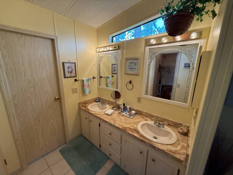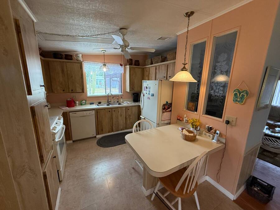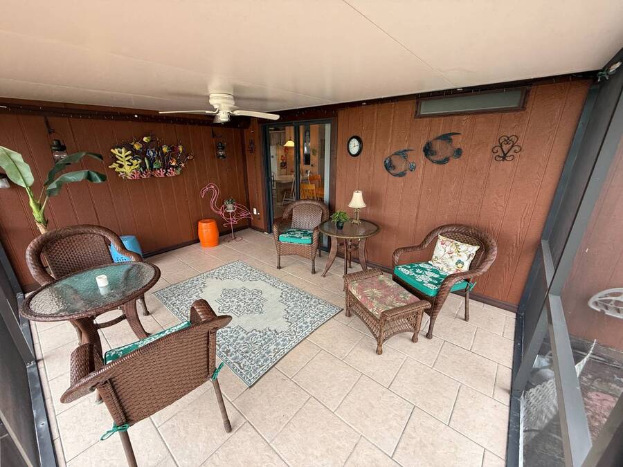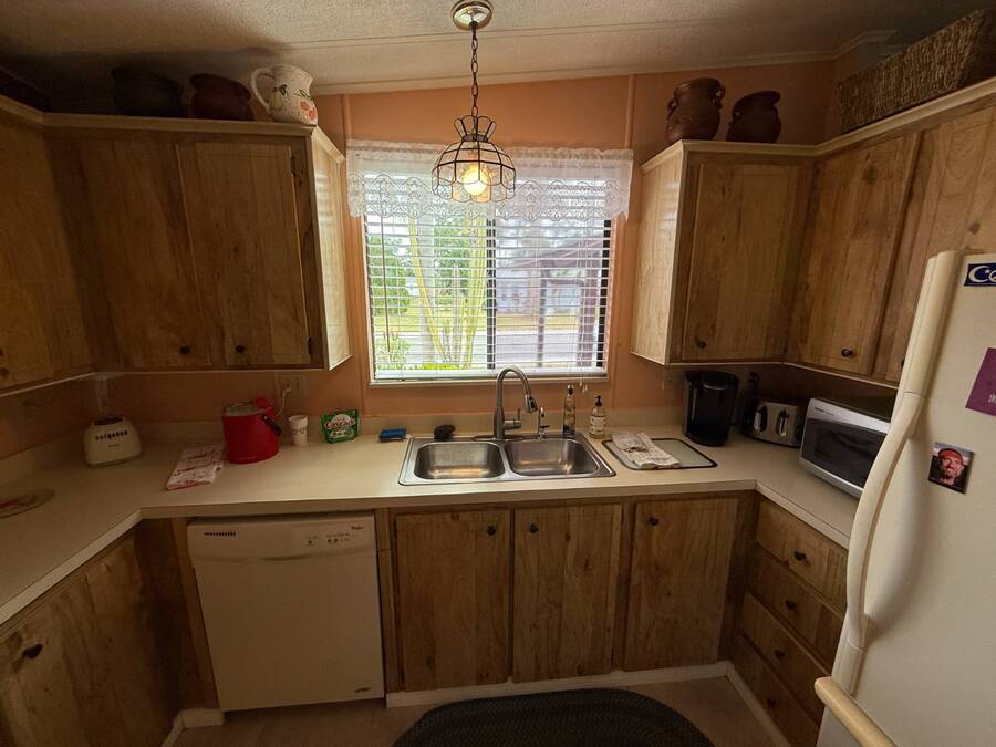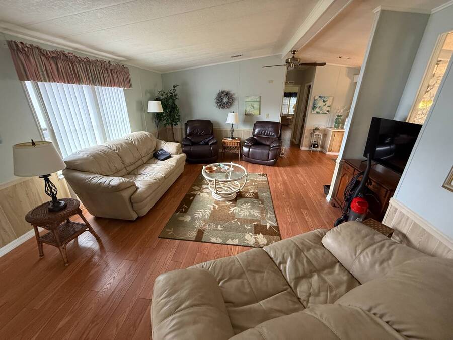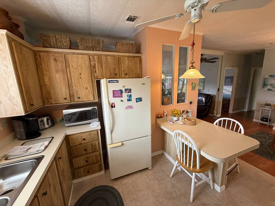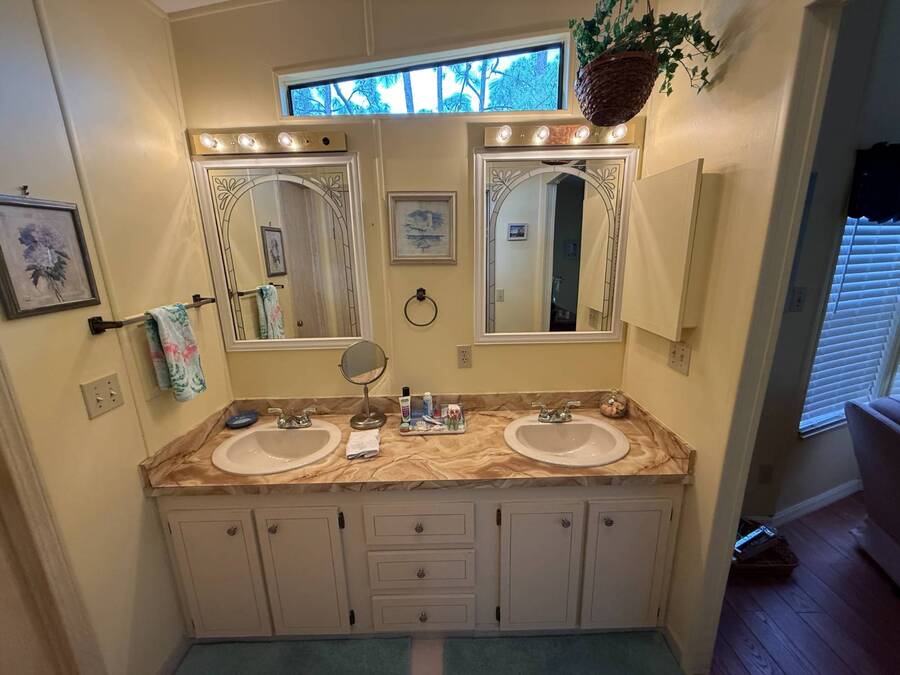 This well cared for 2-bedroom, 2-bathroom home is being sold furnished. The home is located on a quiet street just a few houses down from one of the five pools in the community. When you arrive at the home, you will see the tasteful landscape, shutters on the front of the home, gutters around the home, and a covered front entryway. As you enter the home, you are in the front sitting area with plenty of seating, carpet floors, and a ceiling fan. The primary living area has plenty of additional seating with natural lighting from the windows. The dining area has a table with chairs, a built-in hutch, trey ceilings with a pendant light. The kitchen has lots of cabinets, a breakfast table, and a ceiling fan. The guest bedroom has a bed with furniture, a large closet, and a ceiling fan. The guest bathroom has a single sink vanity, tub with shower, linen cabinet, and tile floors. The primary bedroom is a large room with a queen bed, furniture, a wall closet, and a ceiling fan. The primary bathroom has a large double sink vanity, with a walk-in closet, and separate room for shower. The lanai is a great area to relax and enjoy the Florida weather. This is a screened room with tile floors, a ceiling fan, and table with chairs. UPDATES: Roof (2018) Only a few minutes to one of the five pools & hot tubs, clubhouse, & fitness center as well as tennis courts, pickleball courts and golf course. This community has a full social calendar and activity schedule. Plenty to keep you busy! This is a 55+ (very active) community. Come join this luxury lifestyle community. YOU WON'T BE DISAPPOINTED!!