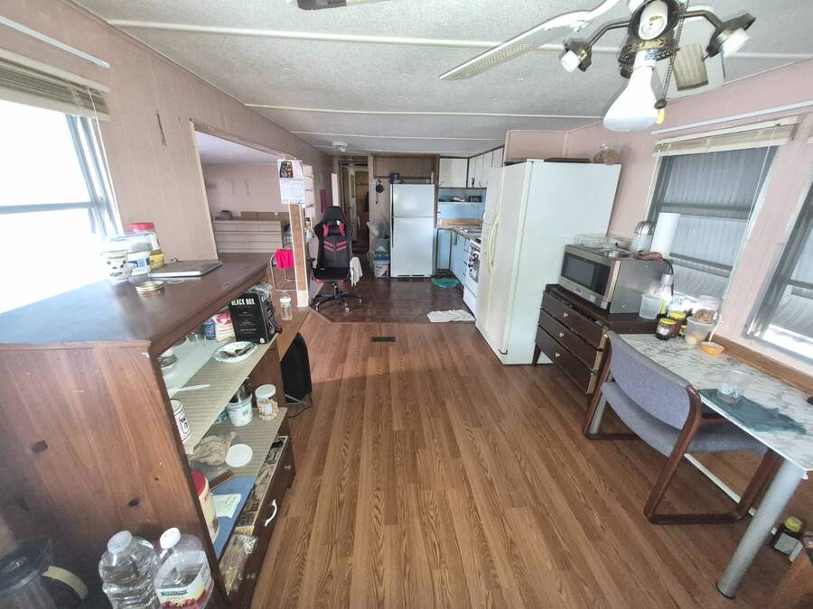 Affordable Investment Opportunity or Ideal Snowbird and Retirement Home in Avery Acres This well-maintained 1964 Pace mobile home presents an excellent opportunity for investors, seasonal residents, or those seeking comfortable and affordable retirement living. Approximately 46 feet in length, this two-bedroom, one-bath home offers a practical layout with solid upgrades and desirable outdoor features. The exterior includes a durable metal roof and metal siding, metal exterior gutters, and hurricane shutters for added protection. The home is finished in white with blue trim and features a covered carport measuring 10 by 37, a spacious three-car driveway, and a 7 by 8 storage shed. A 12 by 9 screened room provides additional living space ideal for relaxing or entertaining. Interior features include central heat and air, supplemented by a window A.C. unit. The home is partially furnished and includes an LG washer, with a dedicated dryer hookup in place, making it move-in ready for seasonal or long-term occupancy. The kitchen offers wood cabinetry, mica countertops, a stainless steel sink, a Hotpoint refrigerator, and a Kenmore stove. Additional features include a 2 by 2 pantry, laminate stick tile kitchen flooring, panel walls, soft panel ceilings, and a ceiling fan. The primary bedroom features blue carpet and window blinds, which are installed throughout the home. The bathroom includes laminate stick tile flooring, a porcelain tub with stainless steel shower fixtures, mica countertops, a fiberglass sink, an exhaust fan, panel walls, and soft panel ceilings. Vinyl flooring runs throughout the remainder of the home for easy maintenance. Located within the Avery Acres Mobile Home Community, residents enjoy a quiet, well-established setting that is popular with snowbirds and retirees. Community amenities are reported to include a clubhouse, social activities, and common areas designed for relaxed Florida living, with convenient access to nearby shopping, dining, and local services. Buyer to verify all community rules, fees, and amenities. This property offers strong rental potential, low-maintenance living, and an affordable entry point into a desirable mobile home community, making it an excellent option for investors, winter residents, or full-time occupants