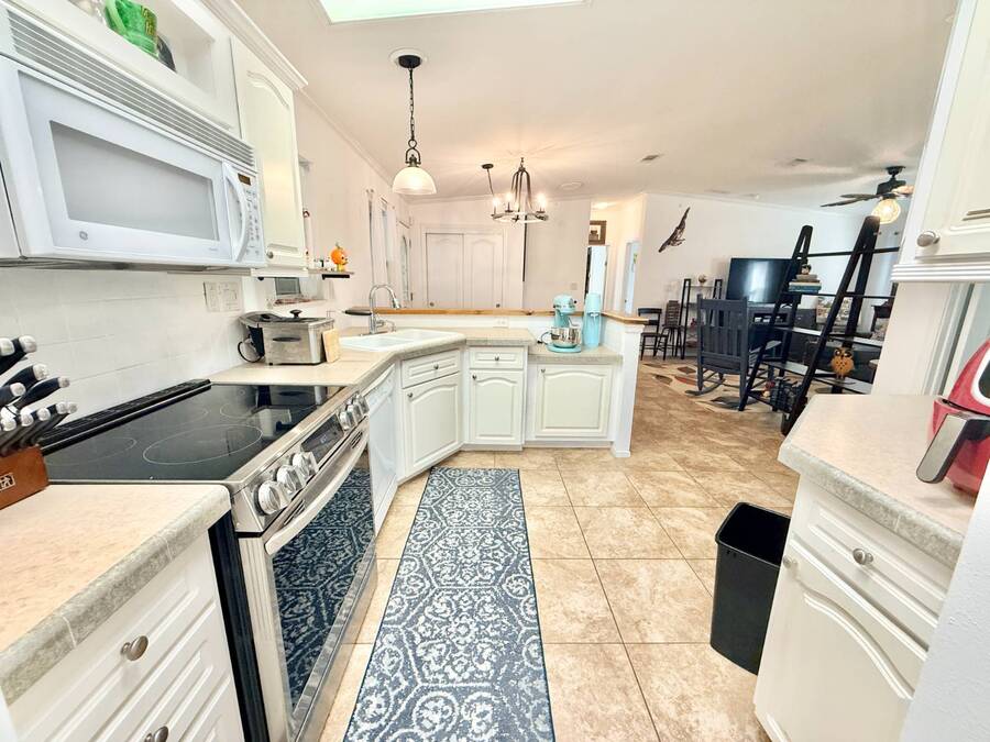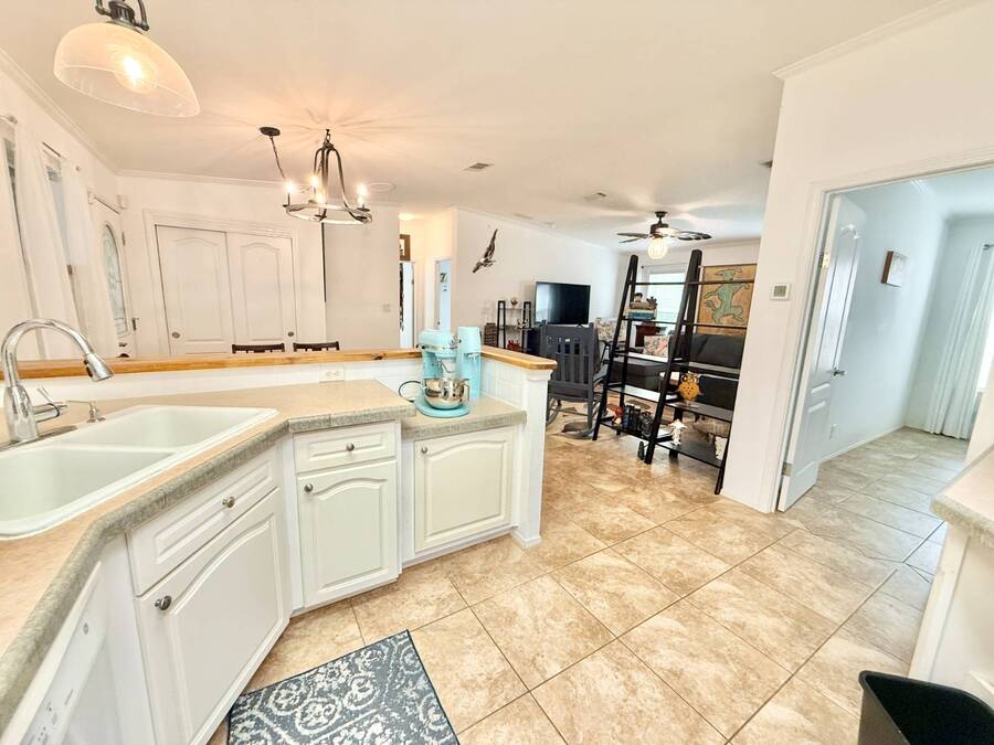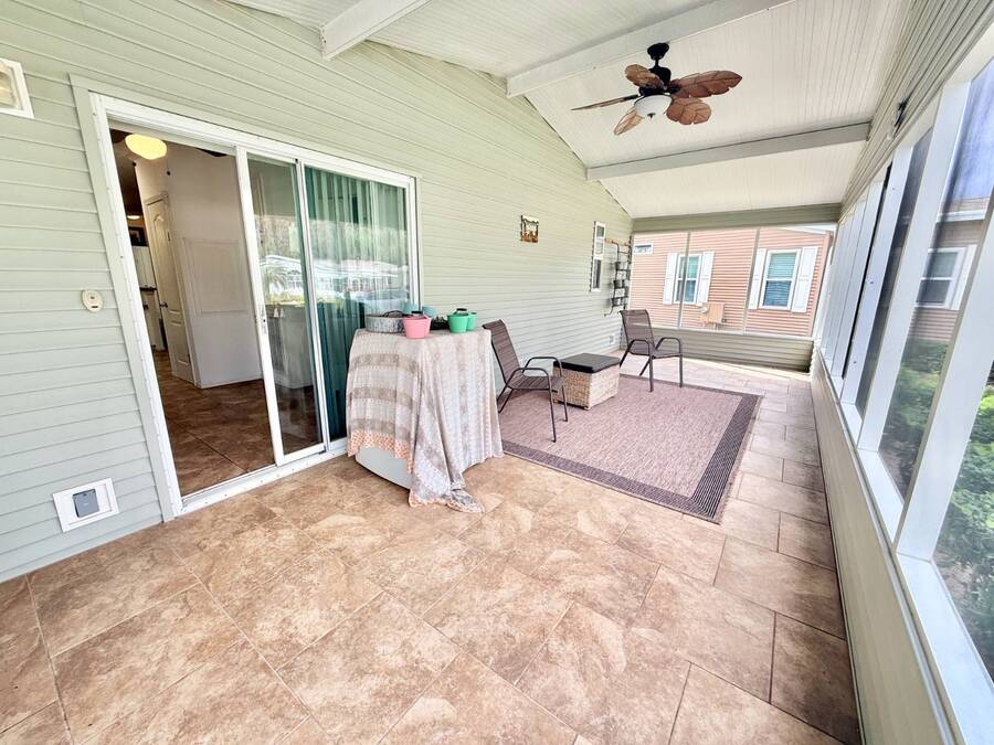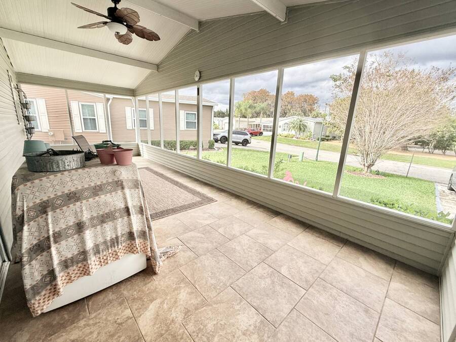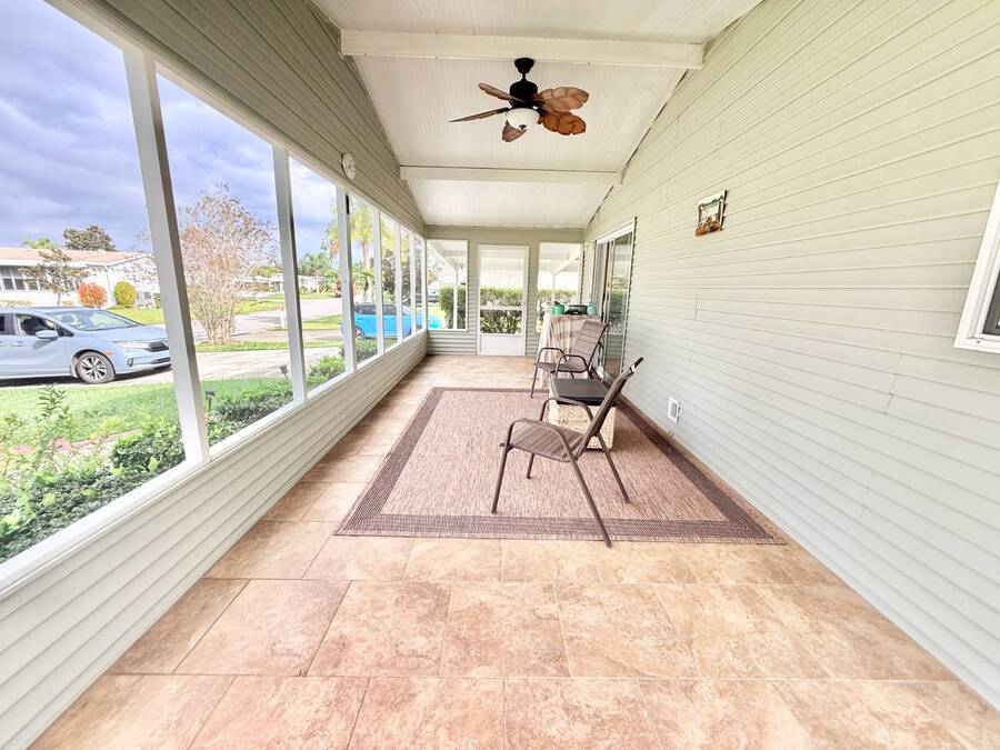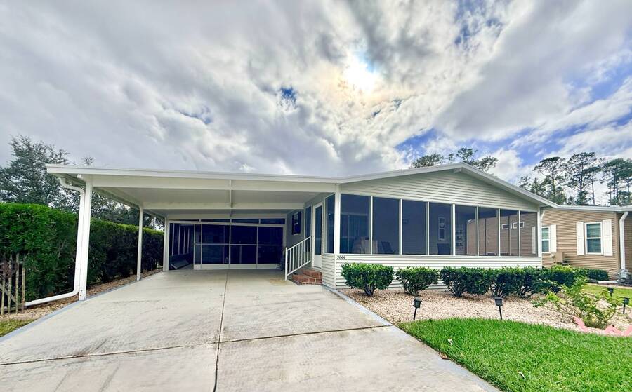 This home is NOT listed with the Crane Lakes office on site. If you would like to schedule a showing for this home or, the multiple other listings we have in Crane Lakes, please call the number/agent listed below. Welcome to this inviting 3-bedroom, 2-bathroom home nestled within the sought-after 55+ Crane Lakes Golf and Country Club community. Perfectly designed for both comfortable living and entertaining, this home offers an exceptional split floorplan that provides privacy for guests and owners alike. The expansive carport offers ample parking for multiple vehicles and doubles as an ideal space for gatherings, complete with a convenient separating screen. Step inside to discover a beautifully flowing living and dining area-an open-concept layout that feels both spacious and welcoming. The thoughtfully designed split floorplan ensures your guests enjoy their own private wing, featuring two generous bedrooms and a full bathroom, while the master suite occupies the opposite end of the home. The master bedroom boasts an ensuite bath adorned with charming barn doors and a luxurious walk-in shower. The heart of the home is the sun-drenched kitchen, equipped with all essential appliances and abundant counter space for culinary creativity. Just off the kitchen, you'll find a versatile bonus area-perfect for dining or hobbies-that shares space with a convenient laundry area. For true Florida living, step out onto the expansive screened-in lanai that stretches across the entire front of the home. Relax in this idyllic spot and soak in breathtaking sunsets, surrounded by lush landscaping and the tranquil ambiance of Crane Lakes. The private backyard adds to the appeal, offering a peaceful retreat for relaxing or gardening. Experience the best of active adult living in Crane Lakes-where comfort, style, and community come together in perfect harmony.