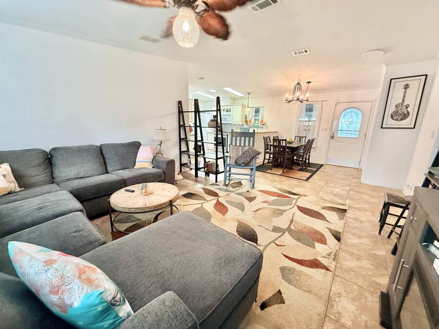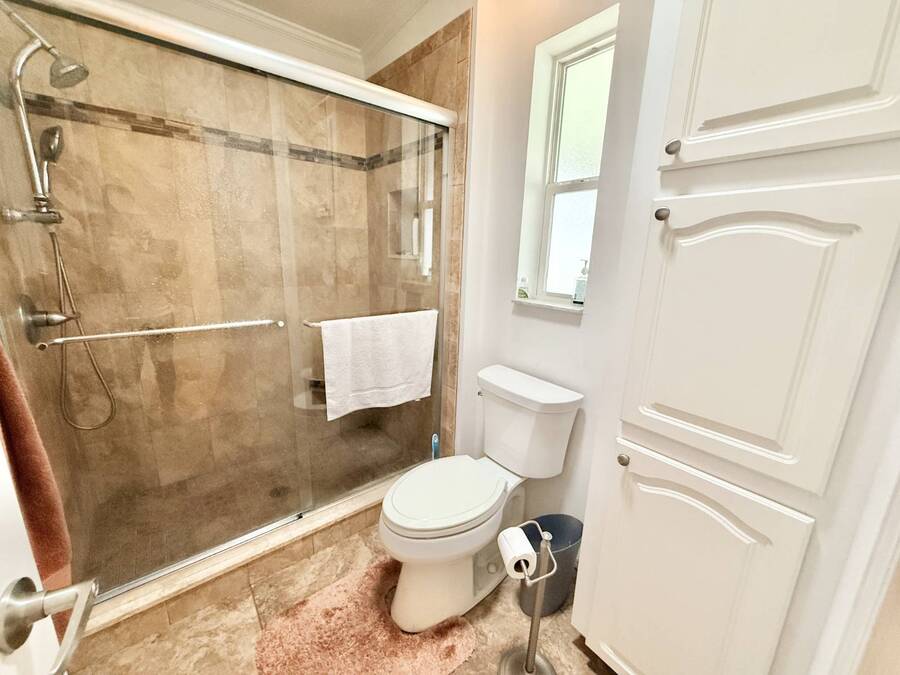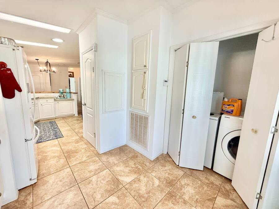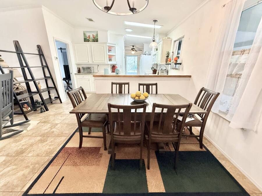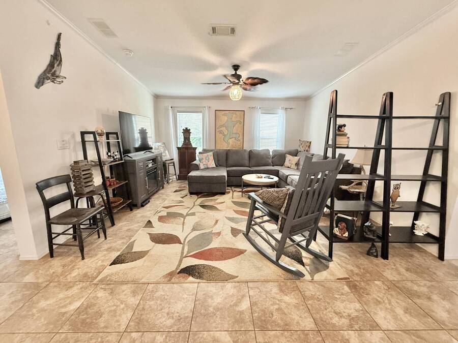 This home is NOT listed with the Crane Lakes office on site. If you would like to schedule a showing for this home or, the multiple other listings we have in Crane Lakes, please call the number/agent listed below. Welcome to this inviting 3-bedroom, 2-bathroom home nestled within the sought-after 55+ Crane Lakes Golf and Country Club community. Perfectly designed for both comfortable living and entertaining, this home offers an exceptional split floorplan that provides privacy for guests and owners alike. The expansive carport offers ample parking for multiple vehicles and doubles as an ideal space for gatherings, complete with a convenient separating screen. Step inside to discover a beautifully flowing living and dining area-an open-concept layout that feels both spacious and welcoming. The thoughtfully designed split floorplan ensures your guests enjoy their own private wing, featuring two generous bedrooms and a full bathroom, while the master suite occupies the opposite end of the home. The master bedroom boasts an ensuite bath adorned with charming barn doors and a luxurious walk-in shower. The heart of the home is the sun-drenched kitchen, equipped with all essential appliances and abundant counter space for culinary creativity. Just off the kitchen, you'll find a versatile bonus area-perfect for dining or hobbies-that shares space with a convenient laundry area. For true Florida living, step out onto the expansive screened-in lanai that stretches across the entire front of the home. Relax in this idyllic spot and soak in breathtaking sunsets, surrounded by lush landscaping and the tranquil ambiance of Crane Lakes. The private backyard adds to the appeal, offering a peaceful retreat for relaxing or gardening. Experience the best of active adult living in Crane Lakes-where comfort, style, and community come together in perfect harmony.