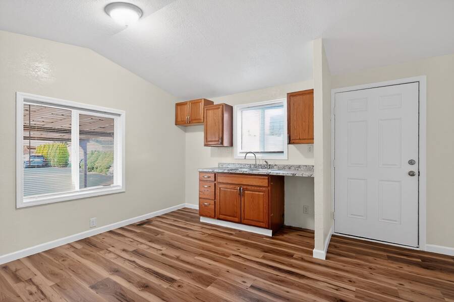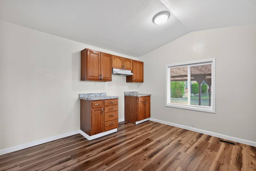 Welcome to this freshly remodeled 2-bedroom, 2-bath manufactured home offering 924 square feet of thoughtfully designed living space. The practical floor plan features a spacious living area that transitions smoothly into a functional kitchen complete with generous cabinetry and counter space. The primary bedroom includes an en-suite bathroom for added privacy and comfort, while the second bedroom and additional full bath provide adaptable space for guests. Large, well-placed windows throughout the home invite abundant natural light. A dedicated laundry area enhances day-to-day efficiency and convenience.