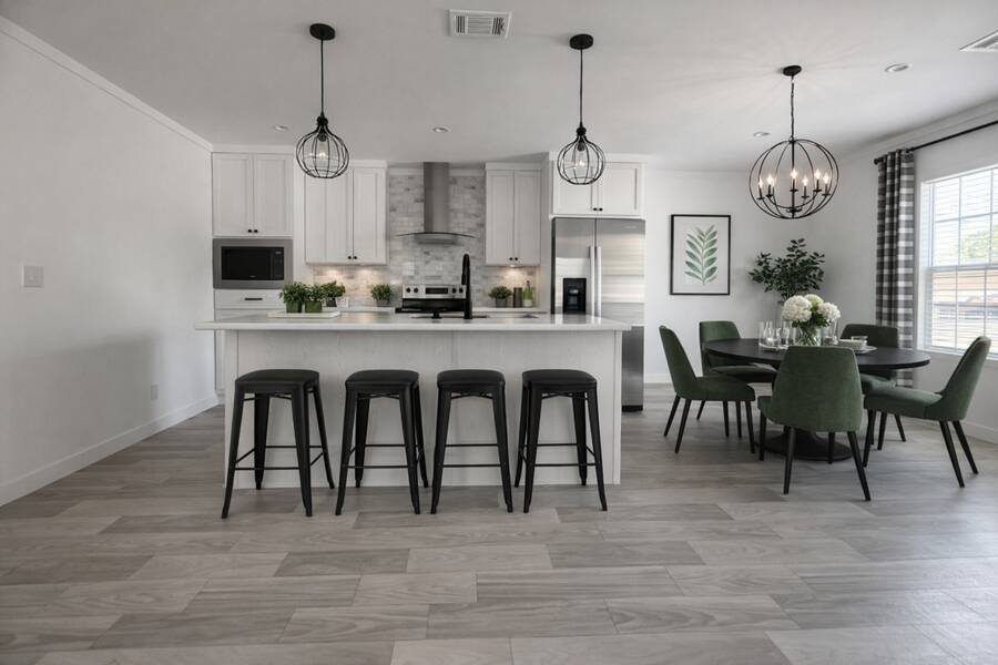 Step inside and experience bright, spacious, modern living at its finest. The open floorplan showcases a stunning island kitchen, complete with gleaming stainless steel appliances, recessed lighting, and generous counter space. The kitchen opens seamlessly to the dining room and living room, creating the perfect flow for hosting family gatherings or entertaining friendsan absolute entertainers dream.