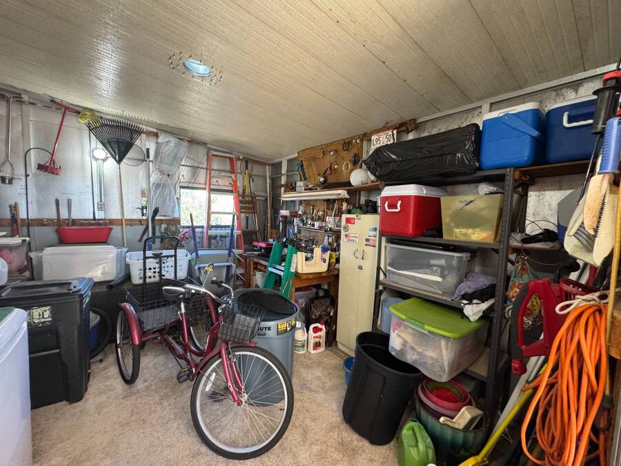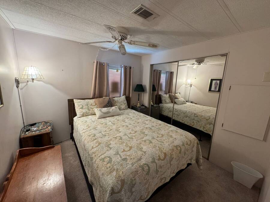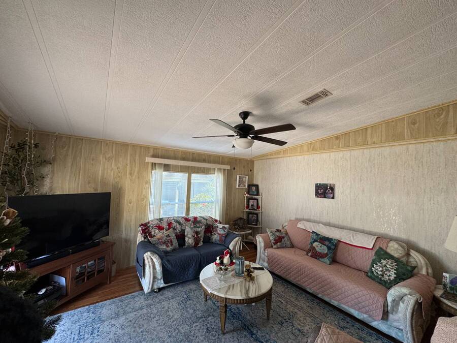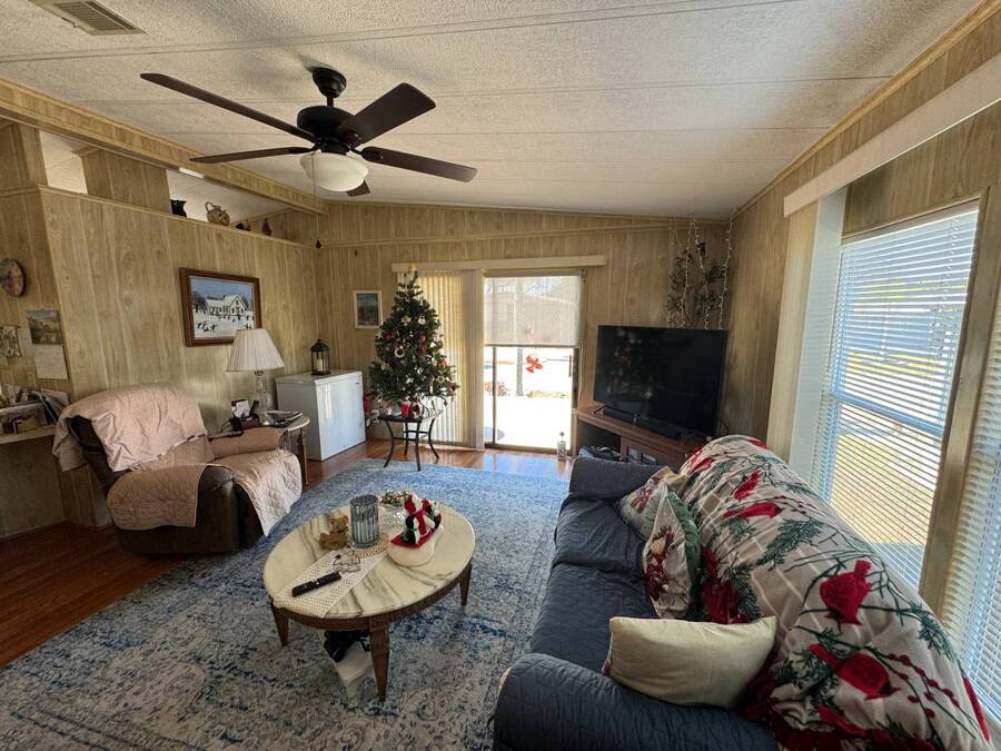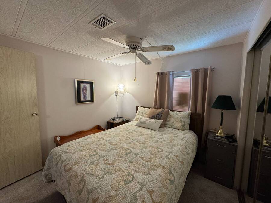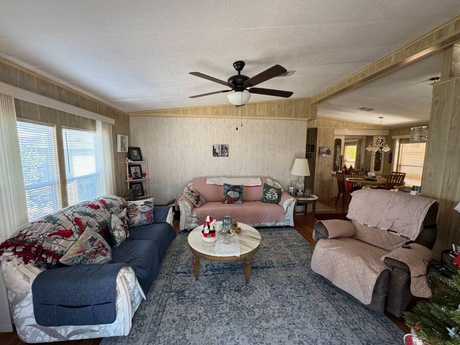 55+/2BED2BATH/1984/864SQFT/LOT.RENT.$1260/LAUNDRY/FRONT.PATIO BIG UPDATES SINCE 2021: FLOORS 2021 + TPO ROOF, AC, PLUMBING (ALL POLYBUTYLENE REMOVED / UPDATED) & HOT WATER HEATER 2022 + WASHER& DRYER 2023+2024. Step through the front sliding glass doors and you're immediately welcomed by a bright, comfortable living room filled with natural light. The living area flows into the kitchen, where a U-shaped layout and L-shaped wraparound bar make everyday living and hosting effortless. Just beyond the kitchen, the designated dining area features a built-in cabinet, adding both character and extra storage. Down the hall, the spacious primary bedroom offers a large walk-in closet and a private ensuite bathroom with a step-in shower and large vanity. The secondary bedroom is generously sized with mirrored sliding closet doors and is conveniently located near the guest bathroom, which includes a tub/shower combo and a large vanity. Throughout the home, you'll find plenty of storage and thoughtfully designed spaces that offer both comfort and room to unwind. Outside, the home continues to impress with a long driveway, carport, and a covered patio area beneath the carport-ideal for enjoying the Florida breeze. A HUGE workshop-style shed provides storage and includes the laundry area, making it both functional and versatile. The front screened porch was removed after storm damage in 2024; however, the foundation remains, and the sliding glass door still serves as a welcoming front entry into the home. Finished with front garden beds and an Irrigation system Included, the exterior offers charm, practicality, and opportunities to personalize the space. Country Lakes Villages 1 offers a peaceful, country-style setting while remaining close to beaches, golf courses, shopping, dining, and local attractions. The community features two maintained neighborhoods (this home being in #1) with scenic lakes, heated pools and hot tubs, expansive clubhouses with full kitchens, libraries, card and game rooms, fitness centers, billiards, and covered patios overlooking the water. Residents enjoy an active lifestyle with pickleball, tennis, shuffleboard, nearby golf courses, and a wide variety of organized clubs and activities, including golf leagues, pickleball leagues, bingo, billiards, cards, crafts, coffee hours, holiday celebrations, live entertainment, karaoke, happy hours, BBQs, social events, group outings, and seasonal activities. Whether you prefer staying active or relaxing by the lake, Country Lakes Villages offers a welcoming community where residents can stay engaged, social, and enjoy the best of Florida living.