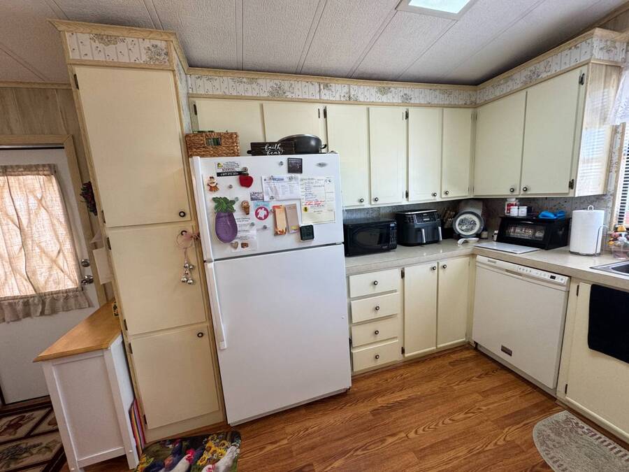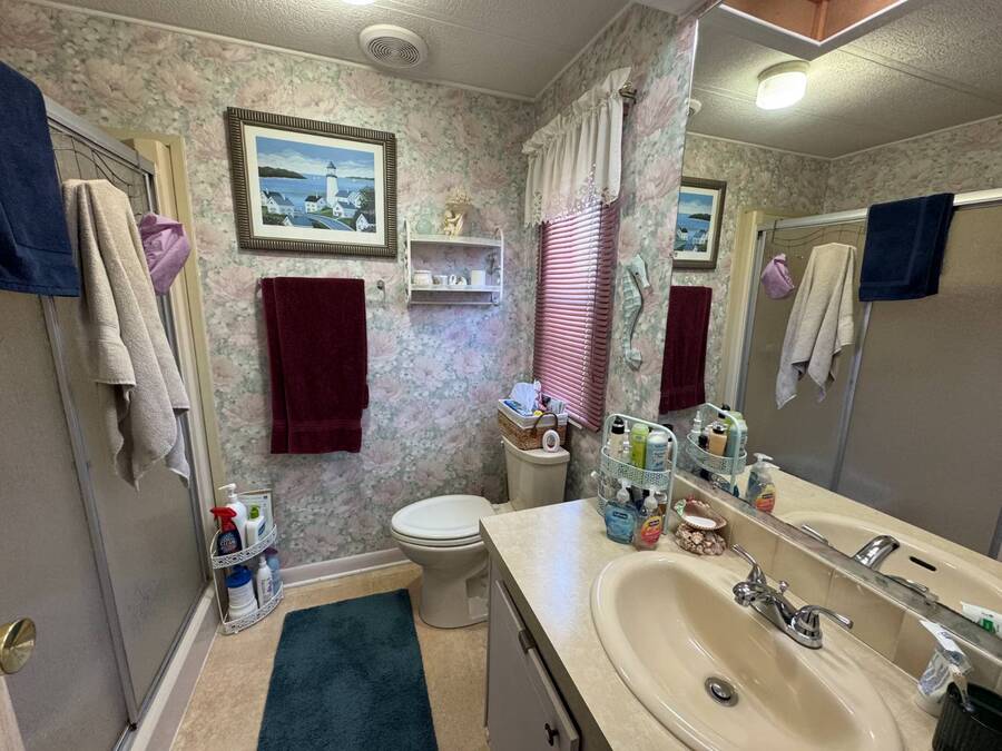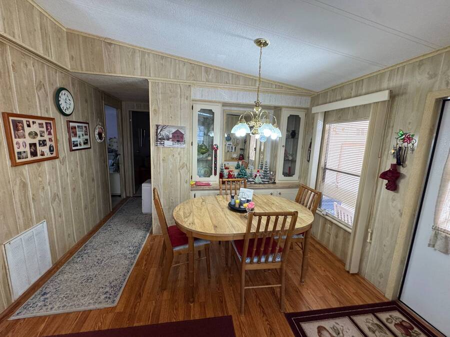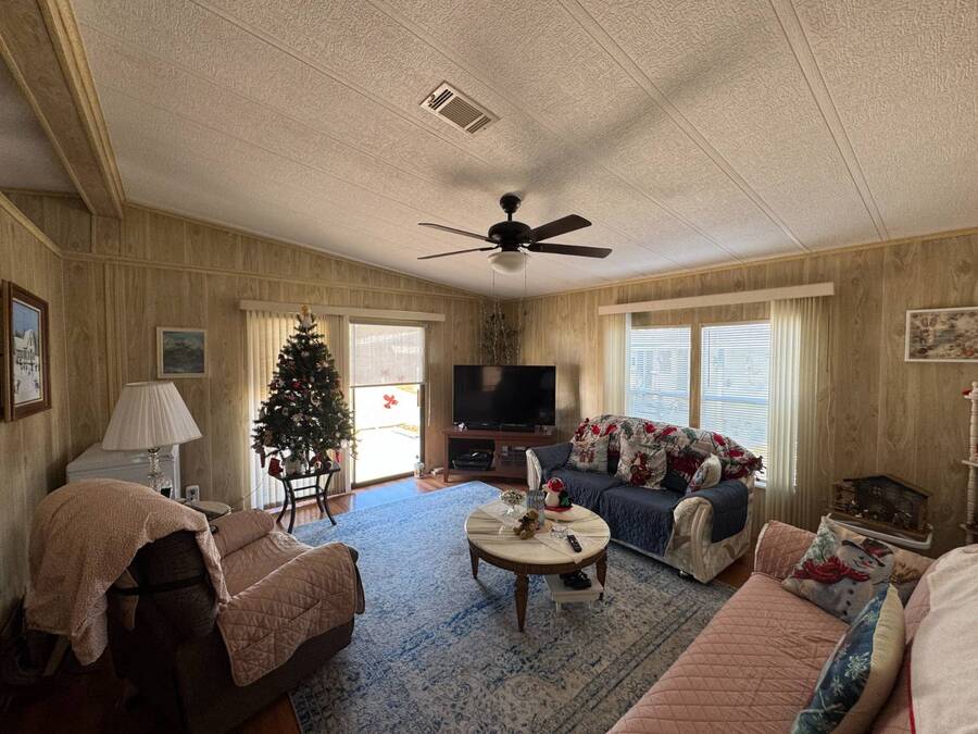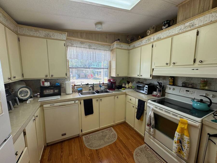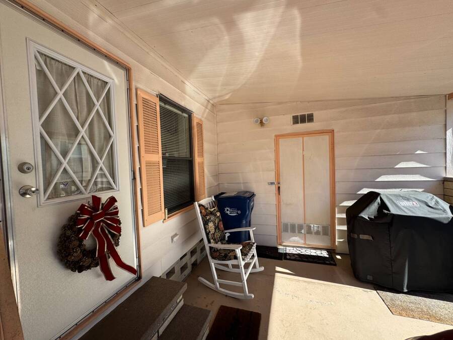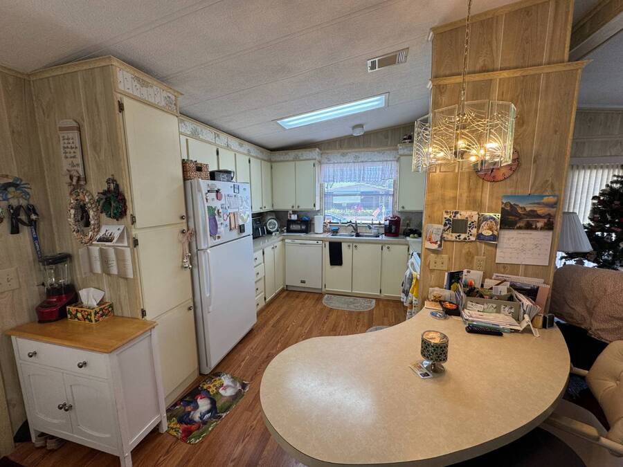 55+/2BED2BATH/1984/864SQFT/LOT.RENT.$1260/LAUNDRY/FRONT.PATIO BIG UPDATES SINCE 2021: FLOORS 2021 + TPO ROOF, AC, PLUMBING (ALL POLYBUTYLENE REMOVED / UPDATED) & HOT WATER HEATER 2022 + WASHER& DRYER 2023+2024. Step through the front sliding glass doors and you're immediately welcomed by a bright, comfortable living room filled with natural light. The living area flows into the kitchen, where a U-shaped layout and L-shaped wraparound bar make everyday living and hosting effortless. Just beyond the kitchen, the designated dining area features a built-in cabinet, adding both character and extra storage. Down the hall, the spacious primary bedroom offers a large walk-in closet and a private ensuite bathroom with a step-in shower and large vanity. The secondary bedroom is generously sized with mirrored sliding closet doors and is conveniently located near the guest bathroom, which includes a tub/shower combo and a large vanity. Throughout the home, you'll find plenty of storage and thoughtfully designed spaces that offer both comfort and room to unwind. Outside, the home continues to impress with a long driveway, carport, and a covered patio area beneath the carport-ideal for enjoying the Florida breeze. A HUGE workshop-style shed provides storage and includes the laundry area, making it both functional and versatile. The front screened porch was removed after storm damage in 2024; however, the foundation remains, and the sliding glass door still serves as a welcoming front entry into the home. Finished with front garden beds and an Irrigation system Included, the exterior offers charm, practicality, and opportunities to personalize the space. Country Lakes Villages 1 offers a peaceful, country-style setting while remaining close to beaches, golf courses, shopping, dining, and local attractions. The community features two maintained neighborhoods (this home being in #1) with scenic lakes, heated pools and hot tubs, expansive clubhouses with full kitchens, libraries, card and game rooms, fitness centers, billiards, and covered patios overlooking the water. Residents enjoy an active lifestyle with pickleball, tennis, shuffleboard, nearby golf courses, and a wide variety of organized clubs and activities, including golf leagues, pickleball leagues, bingo, billiards, cards, crafts, coffee hours, holiday celebrations, live entertainment, karaoke, happy hours, BBQs, social events, group outings, and seasonal activities. Whether you prefer staying active or relaxing by the lake, Country Lakes Villages offers a welcoming community where residents can stay engaged, social, and enjoy the best of Florida living.