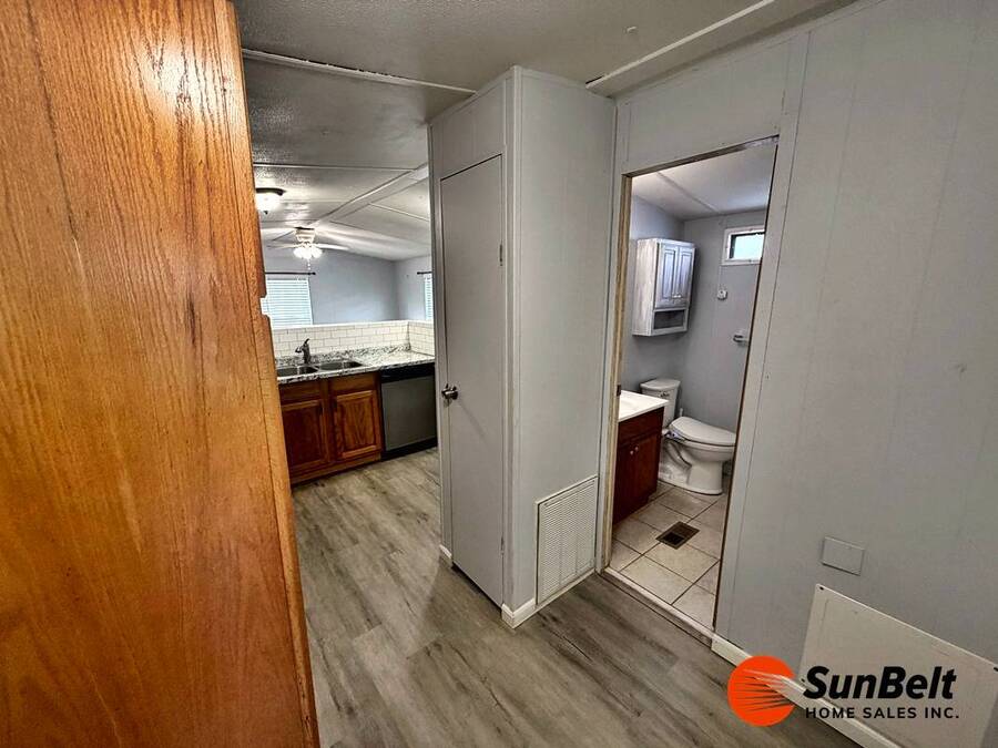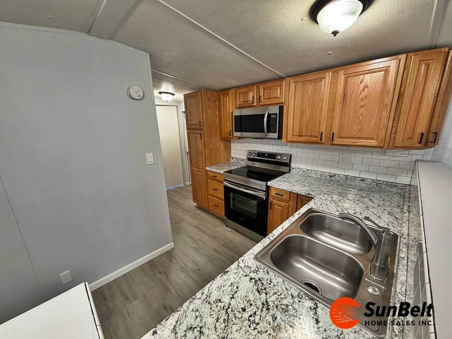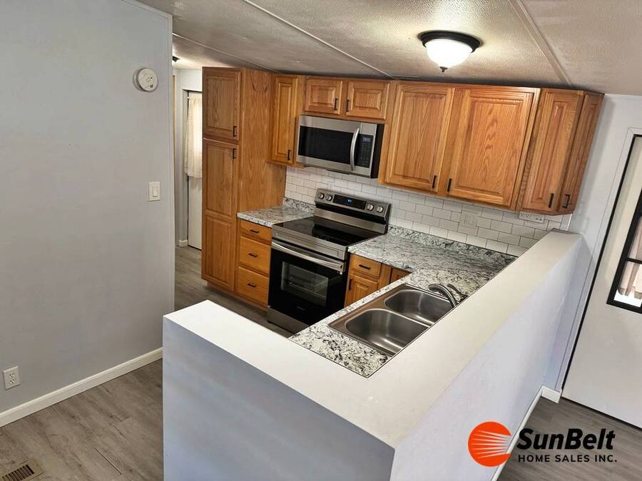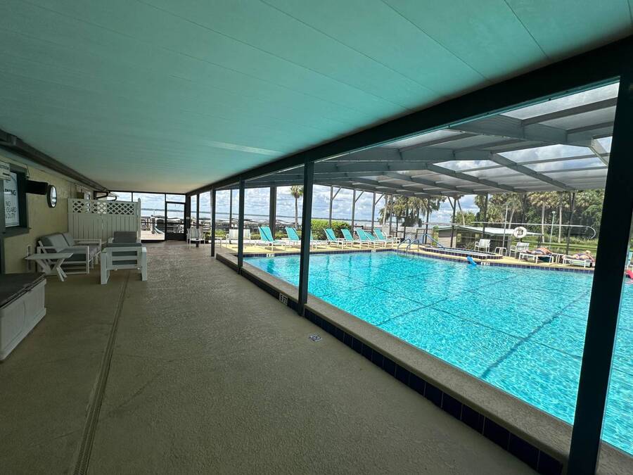 3 Months Free Lot Rent with Full-Price Offer!! I'm single, cute, and ready for commitment. This home is redesigned home in tasteful shades of grey. The bathroom has an expensive walk-in, sit-down tub/shower with dedicated tankless water heater (very senior friendly). Other features include an open plan, luxury vinyl planked flooring throughout, newer cabinets and countertops, with built in microwave, newer SS appliances and an insulated front bonus room for guest bedroom, office space, or hobby room. $7000 ADA Tub/Shower. Located on a big!! corner lot in a gated, waterfront, 55 and very active community. Where LARGE dogs are welcome (breed restricted) amenities include clubhouse on lake, gym, pool, card room, kitchen, large heated pool and spa. Call me today! I will help you secure this home, for your new lifestyle of less worry and more joy.