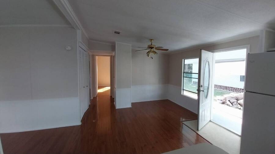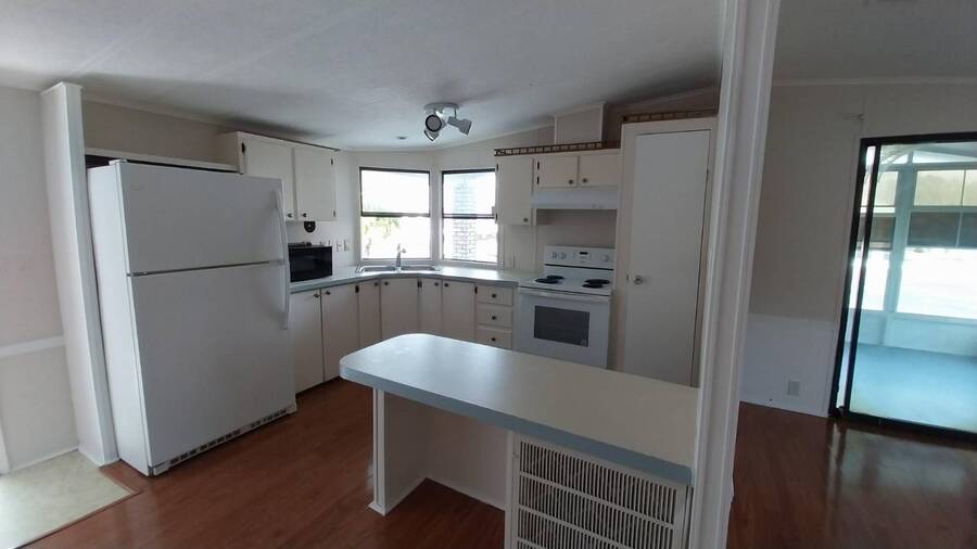 This home welcomes you with excellent curb appeal, a carport, and a long driveway that even allows space for a cozy sitting area. An attached shed offers endless possibilities for storage or creative backyard projects, making your private outdoor space truly versatile.Step inside to an open kitchen overlooking the dining room-perfect for entertaining. The spacious living room flows seamlessly into a cozy enclosed lanai, ideal for enjoying your morning coffee or winding down in the evening.features include: wood-like flooring throughout, 2 comfortable bedrooms and 2 full baths,convenient inside laundry,bright, open layout with inviting spaces. This home is priced to sell, and the seller is motivated-don't miss your chance to make it yours!