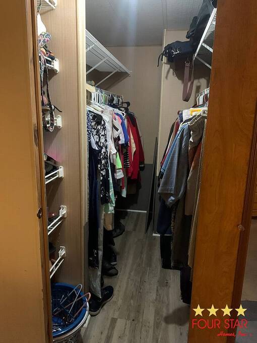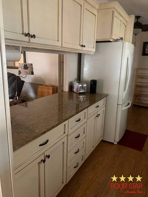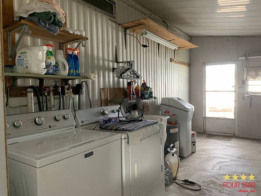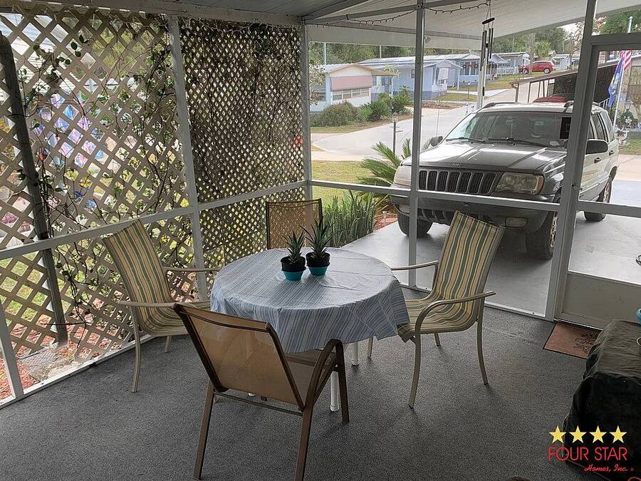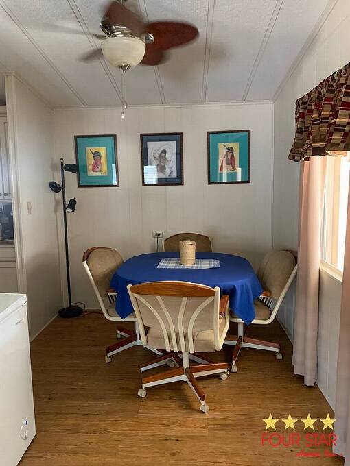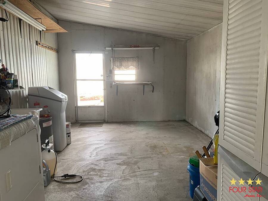This lovely two bedroom two bath home offers a fantastic opportunity to live comfortably in a highly desirable over 55 community at an incredible price. The larger style living room provides ample space for all your furniture and includes room for a large television set against an attractive accent wall that adds a stylish touch to the space. Just off the living room is a well-designed kitchen featuring generous counter space, plentiful cabinets, and a convenient breakfast bar for casual dining. The dining room sits adjacent to the kitchen and flows seamlessly into the living area, creating an ideal layout for both everyday living and entertaining guests. As you move down the hallway, you will find the comfortable guest bedroom that fits a queen sized bed and includes a roomy closet. Directly across the hall is the guest bathroom which features a combination tub and shower. The main bedroom is especially spacious with room for a king sized bed, a dresser, and even a small sitting area for quiet relaxation. This primary suite includes a very nice bathroom with a step in shower, generous counter space, and plenty of cabinet storage. The bedroom also boasts double walk in closets for excellent storage. Outside, you will appreciate the covered carport and the large storage room for tools and seasonal items plus a laundry area. This home is ideally located close to restaurants, shopping, and the beaches. This home also has a whole house water system for better health and skin. It is truly a must see at this amazing price. Garbage and Recycling is included.
