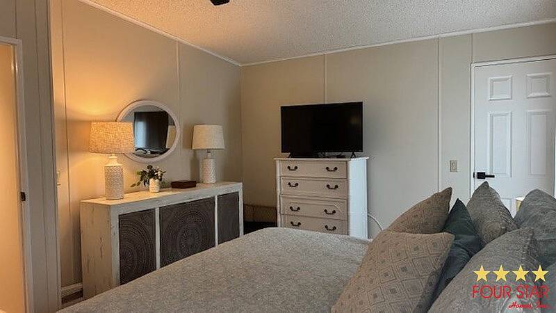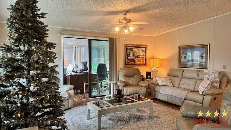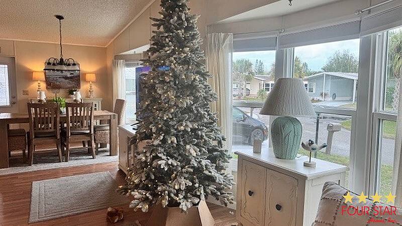 Why remodel when someone already did everything, and did it right? This stunning 2-bedroom, 2-bath manufactured home has been completely redone from top to bottom and is ready for its lucky new owner to simply move in and enjoy. Highlights include Brand-new double-pane windows for comfort and efficiency, new roof and newer AC for peace of mind, Gorgeous all-new flooring throughout, A fully redesigned kitchen with beautiful countertops, abundant cabinetry, and serious storage, both bathrooms completely renovated with fresh, modern finishes, freshly painted inside and with new doors throughout. The bright Florida room, currently used as a home office, offers flexible bonus space, sunroom, hobby room, reading retreat, you decide. Step outside to enjoy an oversized lot shaded by a magnificent, full-bloom mango tree, yes, it produces fruit, Florida living at its finest. And the best part? This home is being sold fully furnished, including, Brand-new leather living room furniture, A beautiful new dining table, A king-size bed in the primary suite for ultimate comfort. Located in a well-maintained, age-restricted community offering a relaxed lifestyle and friendly atmosphere. Every detail has been thoughtfully curated, making this home truly move-in ready. Clean, stylish, and incredibly welcoming, this one must be seen to be fully appreciated. All that is missing is you, and maybe a mango smoothie recipe.