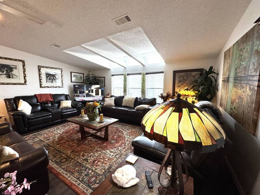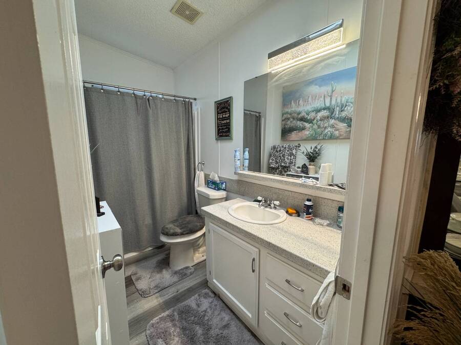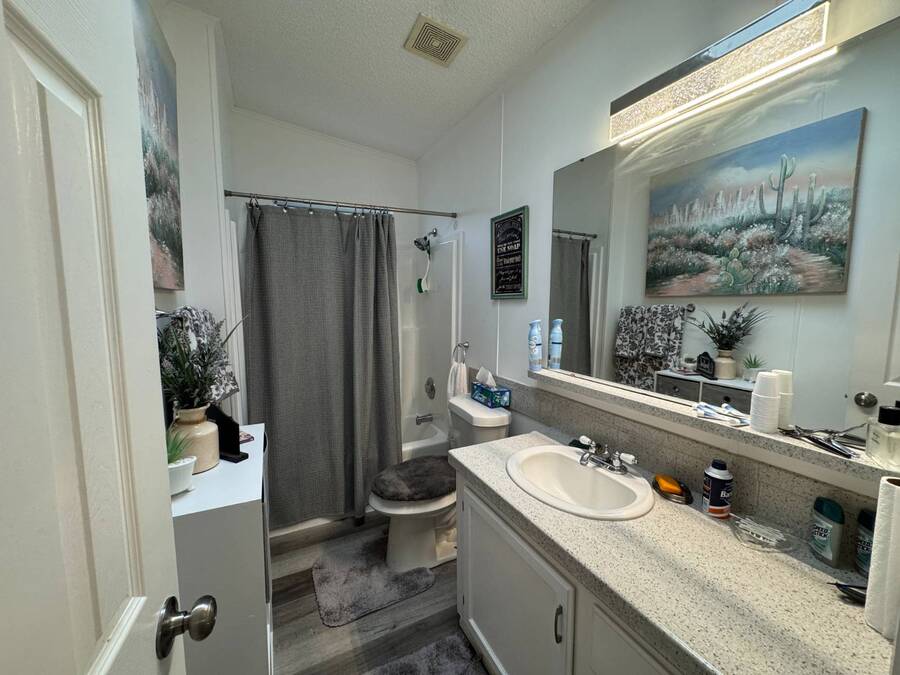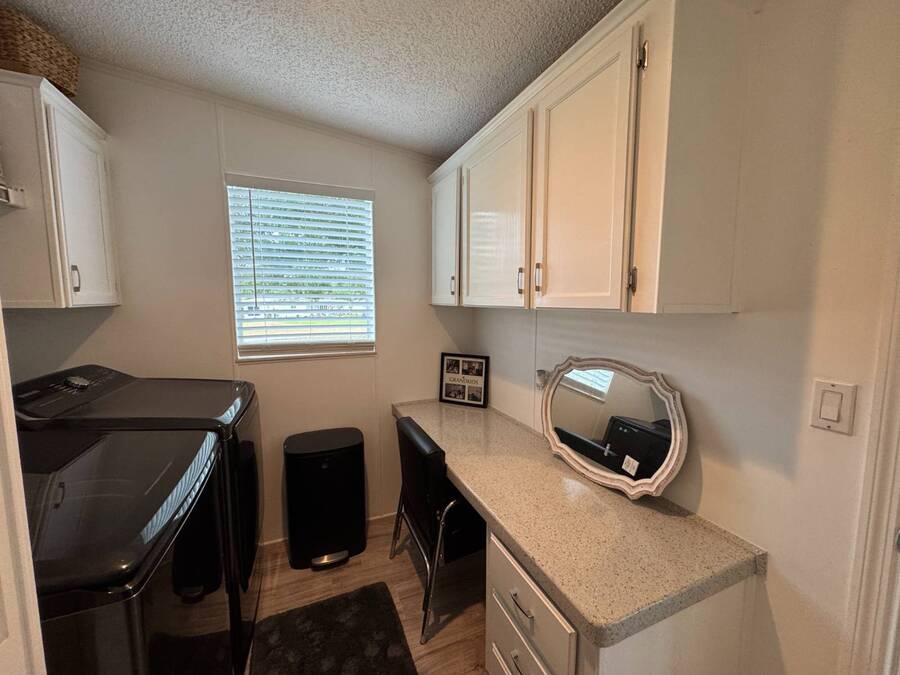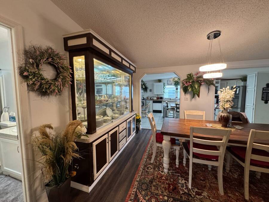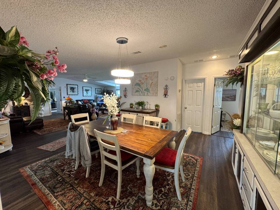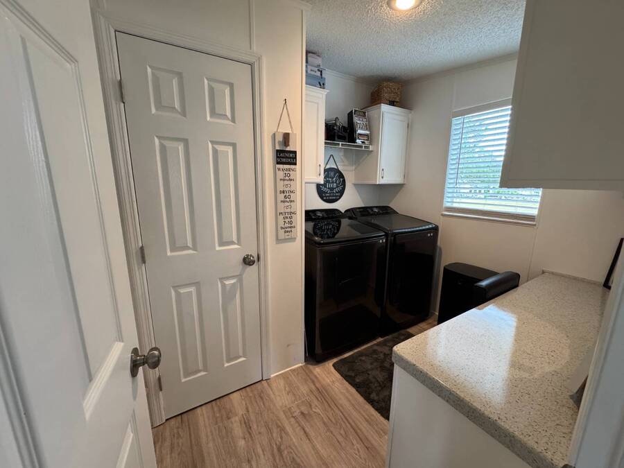 Discover this triple-wide manufactured home located in the popular Schalamar Creek and Country Club, located just outside Lakeland, FL. It is conveniently located between Tampa and Orlando with easy access to both coasts, theme parks, shopping, medical service facilities, and sporting and entertainment attractions. This spacious home boasts an open floor plan with over 1700 sq ft, including 3 large bedrooms, 2 sizeable bathrooms, a large kitchen with a big island, a large living room, a formal dining area, and a separate laundry room. The lot lease is currently $1,145/month. The large enclosed lanai and outdoor patio offer additional living space to enjoy the Florida lifestyle and/or entertain family/friends. There is newer vinyl plank flooring throughout the main living areas. Other key features of this home include the crown molding, natural light, tray ceilings, cathedral ceilings, oversized primary bedroom, newer refrigerator, and a roof that is about 5 years old. This home is located on a scenic lot overlooking the 14th hole of the professionally designed golf course. There is a golf cart included with the sale. Schalamar Creek is a gated 55+, pet-friendly resort that is tucked away on 500 acres of waterways, offering all the amenities and natural beauty that the Florida lifestyle is known for. Some of the amenities are a full-service restaurant, an 18-hole championship golf course, a pro shop, tennis courts, pickleball courts, putting greens, a driving range, lake access, fitness center, clubhouse, heated and fitness pools, etc. It is an active community with entertainment, church services, dances, potlucks, card games, group travel opportunities, and much more. Don't miss this incredible opportunity! Schedule your private in-person or virtual showing today and explore everything this vibrant community has to offer. All listing information is deemed reliable but not guaranteed and should be independently verified through personal inspection by appropriate professionals. Our company does not and cannot guarantee or warrant the accuracy of this information or the condition of this property. Measurements are approximate. The buyer assumes full responsibility for obtaining all current rates of lot rent, fees, and pass-on costs. Additionally, the buyer is responsible for obtaining all rules, regulations, pet policies, etc., associated with the community, park, or home from the community/park manager. Our company is not responsible for quoting said fees or policies. Financing is available through 3rd party lenders. The sales price does not include tax, dealer fees, or administrative fees. Please contact one of the sales agents for additional information.