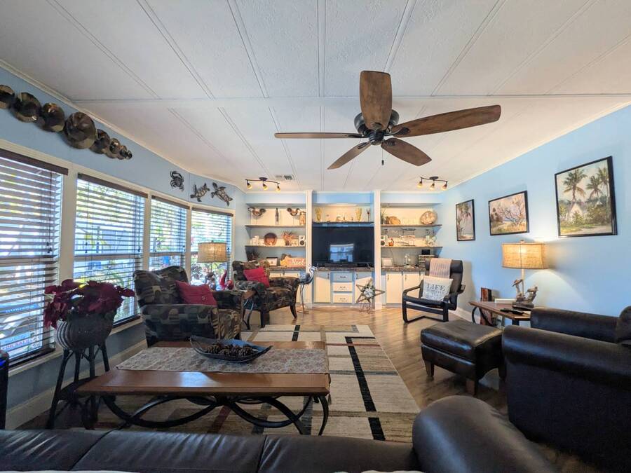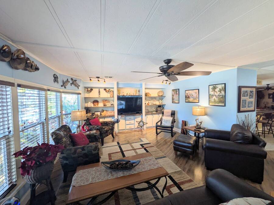 Beautifully Updated Home in Highly Sought-After 55+ Community! Welcome to Shady Lane Oaks in Clearwater, Florida! If you've always dreamed of living in the sunshine and enjoying warm weather year-round, now is your chance! This move-in-ready home has just been listed and offers a unique opportunity to experience Florida living at its best. Don't waste a minute on calling and seeing this home. It is one of a kind-Inside and Out!! Address: Lot #141, Shady Lane Oaks, 15777 Bolesta Road, Clearwater, FL Community: Shady Lane Oaks is a 55+ community (one resident must be 55+, and the second can be 45+). Lot rent is approximately $960 per month and includes water, sewer, trash collection (twice a week), lawn care, pass-through taxes, and access to the fantastic amenities of both Shady Lane Oaks and its neighboring park, Shady Lane Village. Pet-Friendly: The park is dog-friendly, allowing up to two pets with a combined weight limit of 25 lbs., and indoor cats are welcome too! Golf Cart Friendly: Get around the park in style with your own golf cart! This vibrant community hosts a variety of social events throughout the year, including bingo, card nights, karaoke, golf cart parades, dinners, craft shows, potlucks, and so much more. Park Amenities Include: • Clubhouse with a commercial kitchen • Lending library • Billiards room • Heated swimming pool • Shuffleboard courts • Horse pits • On-site laundry facilities • A beautiful lake with a fountain, BBQ/picnic areas, and social activities Home Features: • Size: Spacious 57 x 24 double-wide home with 1368 sq.ft. of living space plus extra footage with a large, screened lanai and attached shed. • Furniture: comes completely furnished with some beautiful modern furniture!! • Condition: very well kept home with many beautiful updates • A/C: 2015 • Roof: recoated in 2023 • NewVapor barrier: 2023 • Tie downs: new 2016 • Water Heater: New 2020 • Parking: Carport for 2 cars. • Interior: Beautiful laminated flooring throughout, with ceramic tile in the kitchen and bathrooms. Meticulously maintained-ready for you to move in! Inside the Home: • Living Room-beautiful laminate flooring. 4 chairs, leather sofa, rug 2 end tables, coffee table, tv, deck and chair and bookcase. (see pics) • Kitchen: Features an island bar, 4 bar stools, all appliances, ceramic tile flooring, and updated appliances. • Dining Room: Beautiful table with 8 chairs, hutch and a built-in hutch as well. • Family Room-laminate flooring, leather couch with recliner on both sides, leather recliner, fireplace, TV, lamps, metal side tables, and rug • Wet Bar-beautiful Wet Bar • Master Bedroom-. Laminate flooring. King size bed, new (6 months old) mattress, 2 nightstands, long dresser with mirror and dresser stays with home. • Master Bath: remodeled in 2024. Beautiful marble sink vanity. Ceramic flooring. It comes with baker's rack, bathroom storage cabinet and medicine cabinet • Guest Bedroom-Laminate flooring. It comes with queen size bed, 2 nightstands, dresser and built-in desk. • Guest Bath: remodeled in 2025. Beautiful single marble vanity with step-in shower • Laundry Room: It comes with new (6 months old) stackable Samsung washer and dryer. • Screened Lanai- Nice big, screened lanai completely furnished and ready for many get togethers. • Shed: • Outside Patio area- It comes with 8 chairs, baker's rack and a table with umbrella and a swing. Prime Location: • Just minutes from Indian Rocks Beach (9 miles) and Clearwater Beach (11 miles) • Only 5 minutes to Tampa Bay Beach • Close to shopping, grocery stores, restaurants, and entertainment • PIE Airport: Just 2 miles away, making travel a breeze. • Tampa Airport: Only 20