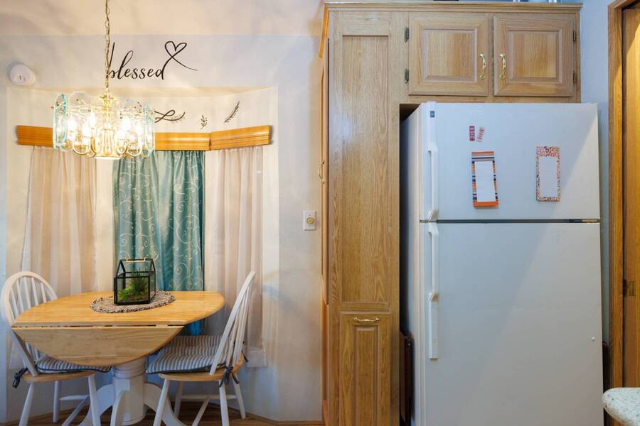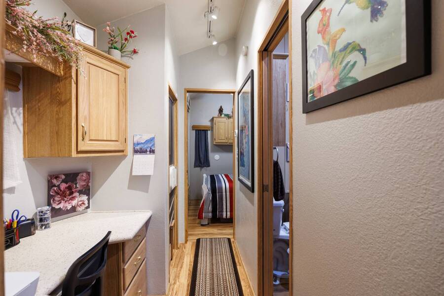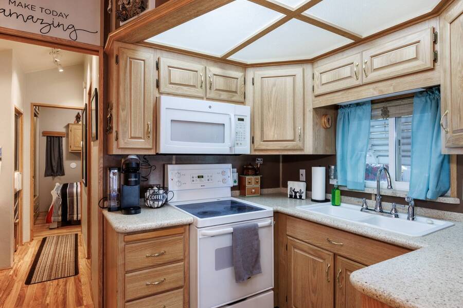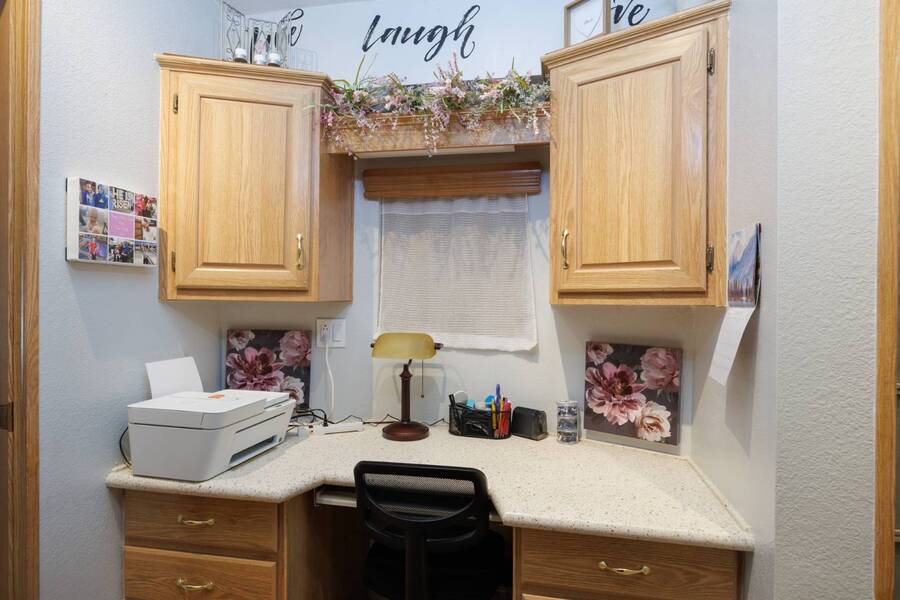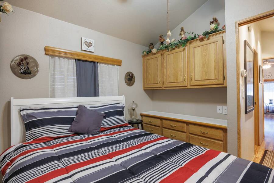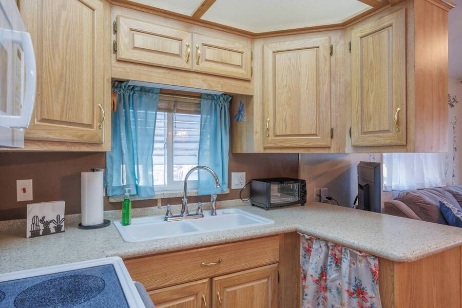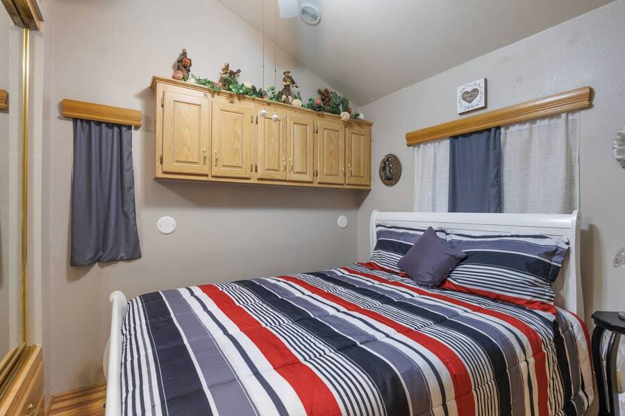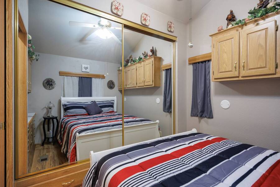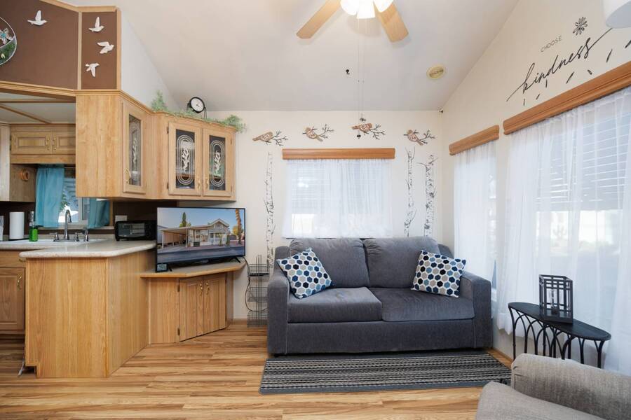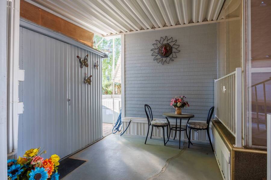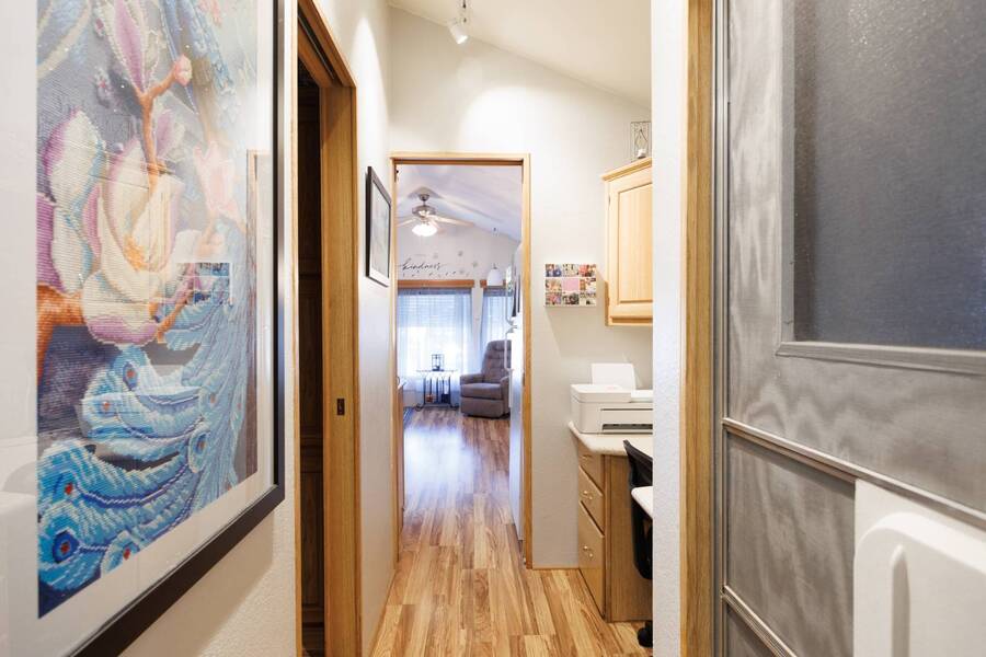 Welcome to your furnished, move-in ready park model in the desirable 55+ Las Colinas RV Park in Eloy, AZ! This beautifully maintained home features a new roof, vaulted ceilings, and a bright, open layout. Enjoy the year-round comfort of the enclosed, insulated porch and the convenience of a hallway office nook. The property includes a stacked washer/dryer (in the shed), an attached carport, tasteful landscaping with irrigation, and a private backyard with an orange tree and block fence. Located in an active 55+ community with amenities and activities, this home offers easy, low-maintenance living. Just bring your suitcase!