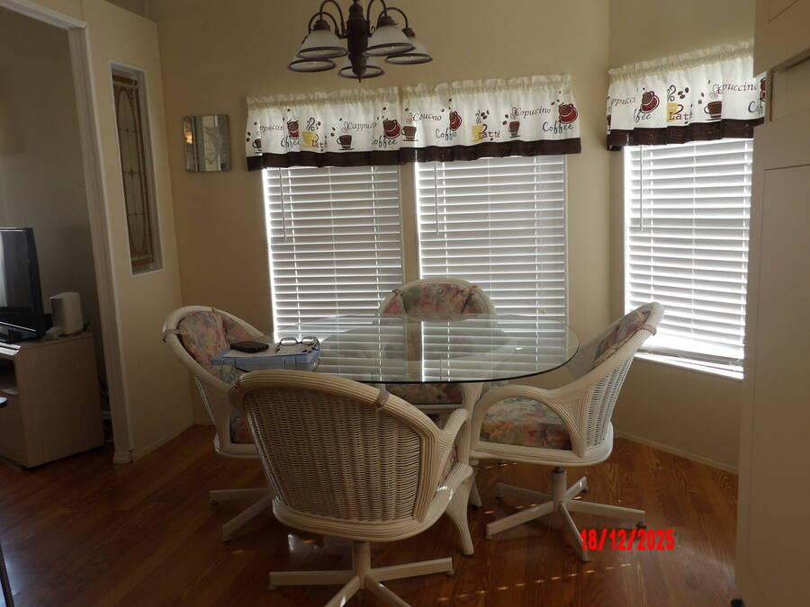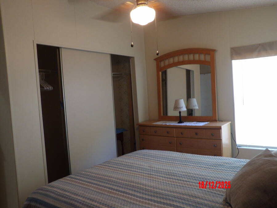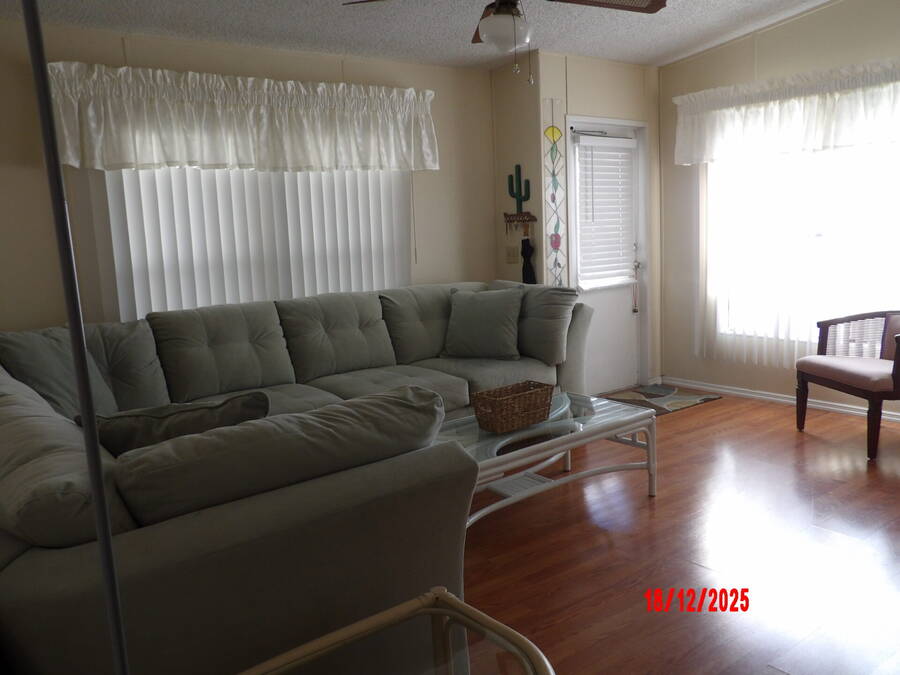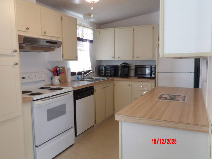 Move in ready 2-Bedroom, 2-Bath home offering 864 sq ft of comfortable living space. Durable Linoleum flooring in kitchen and baths and stylish vinyl throughout the rest of the home. This fully furnished residence has a cozy appeal. The kitchen offers plenty of cabinet space for storage, making meal preparation a breeze. Outside enjoy a large backyard perfect for relaxing, and entertaining. Two spacious sheds for tools or hobbies. Perfect for one person or as a snowbird retreat, this home provides a peaceful and easy lifestyle. An added bonus, enjoy free golf in 2026 with the purchase of this home.