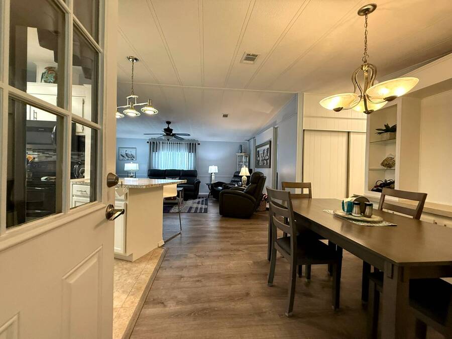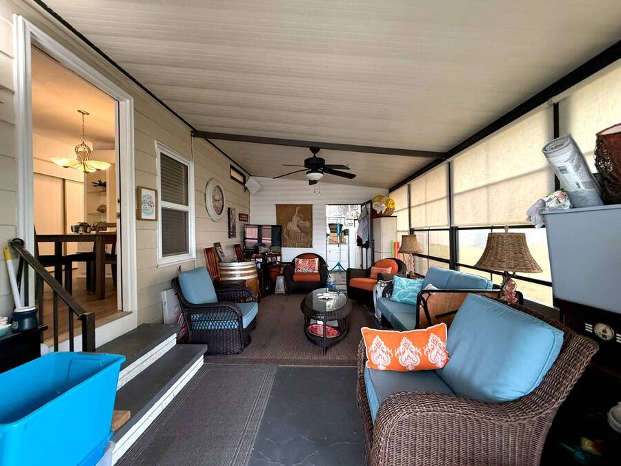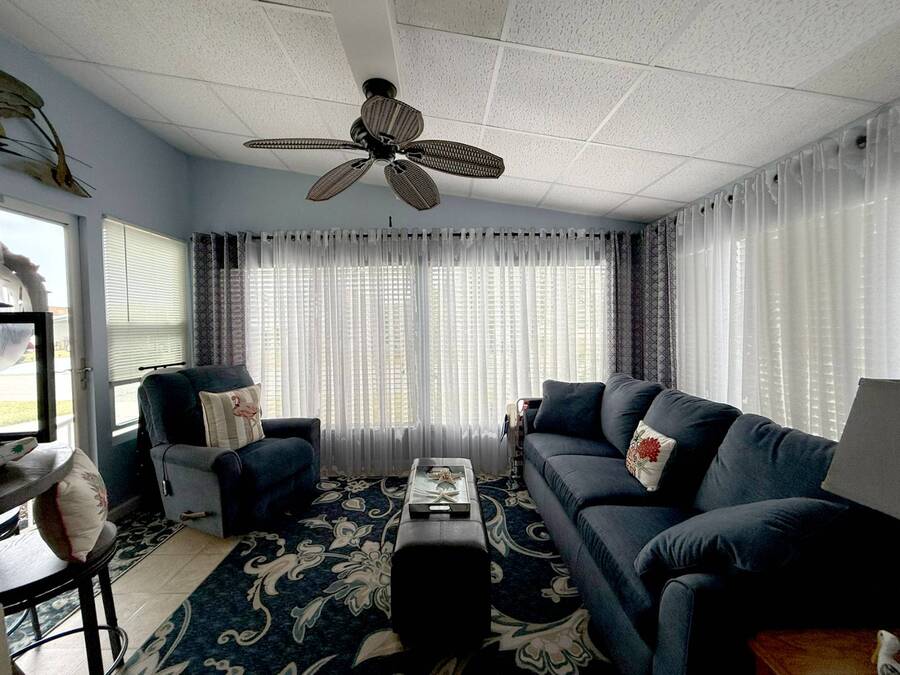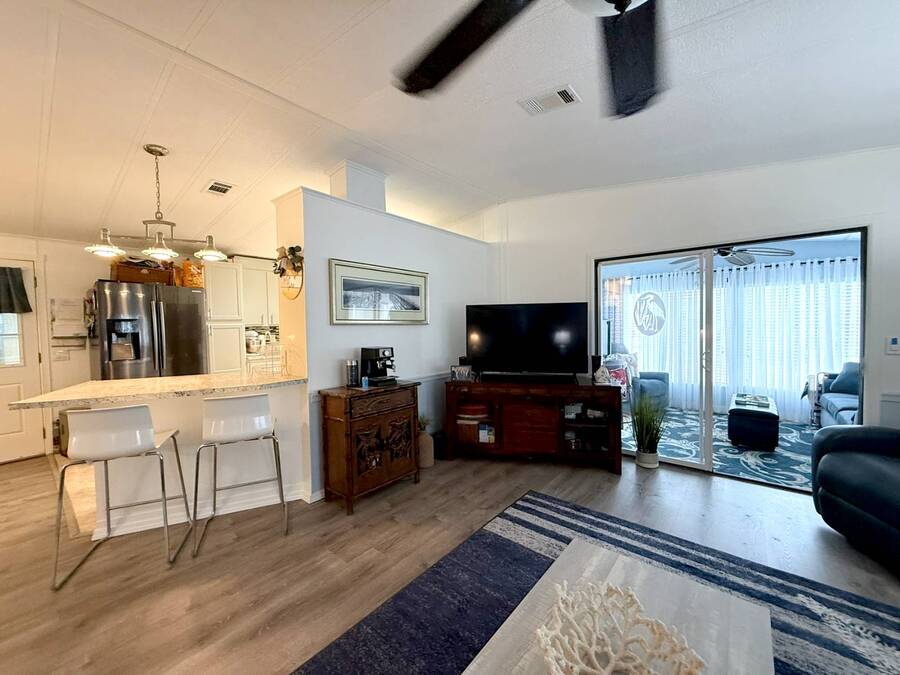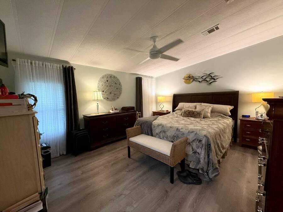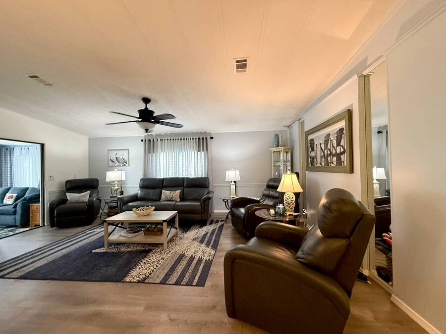 Effortless Florida Living - Turnkey Home in Ellenton's Colony Cove This turnkey two-bedroom, two-bathroom home is located in the sought-after Colony Cove community in Ellenton, Florida, and is being sold fully furnished, making it truly move-in ready. As you arrive, double doors welcome you into the first lanai, a flexible space that can easily be air-conditioned and enjoyed year-round. Whether used as a sitting area, hobby space, or additional living area, this room adds valuable square footage and sets the tone for the relaxed coastal style found throughout the home. With furnishings included, all that's left to bring is your toothbrush. Just off the lanai is a spacious laundry and storage area that offers exceptional functionality. There is ample room for a freezer, an extra refrigerator, and plenty of storage for tools, supplies, or hobbies. This area adds convenience and keeps everything neatly organized, highlighting how thoughtfully designed this home is for everyday living. Step inside to a bright and inviting kitchen that is both practical and welcoming. It features laminate countertops, ceramic tile flooring, a double oven stove, and a newer refrigerator. Vaulted ceilings enhance the open feel, while laminate plank flooring flows throughout the rest of the home. The dining area includes built-in storage and updated lighting, adding character and efficiency. An oversized pantry in the hallway provides even more storage, with enough space to relocate the washer and dryer indoors if desired. The guest bathroom includes an updated vanity and a tub and shower combination. The guest bedroom is generously sized and easily accommodates a king-size bed. Throughout the home, the furnishings are nearly new and in excellent condition, contributing to the clean and comfortable feel. The primary bedroom offers a peaceful retreat with tasteful décor and plenty of space. The en suite bathroom features a step-in shower, an updated vanity, and a large walk-in closet, continuing the theme of abundant storage. A membrane roof adds long-term value and peace of mind. The living area is warm and welcoming, furnished with newer leather seating, including electric recliners and a ceiling fan for added comfort. From here, you can step out onto the front lanai, another easily air-conditioned space that can be enjoyed in every season. Lot rent in Colony Cove varies depending on the location of the home within the community. This monthly fee includes not only access to the extensive list of amenities but also covers many of your routine living expenses. Water, sewer, trash pickup, property taxes, and lawn care are all included, leaving you responsible primarily for electricity and internet, which helps simplify budgeting. While all listing details are provided to the best of our knowledge and believed to be reliable, we always recommend that buyers arrange for a professional home inspection by an experienced company familiar with manufactured homes. Please note that lot rents are set by the community office and are subject to change. Colony Cove offers an exceptional lifestyle with minimal hassle-perfect for those looking to enjoy their retirement in comfort, convenience, and community.