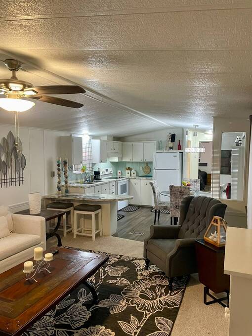 Hidden Cove East / Lot #34 / 2 Bedroom/2 Bath / 840 Sq. Ft. / $45,000.00 PRICE REDUCED ALMOST 3K!!! This home is located in the beautiful Hidden Cove East community, and is unusually hard to find a home as gorgeous as this one! Once residents purchase, they stay, so homes do not come on the market very often. Jump on this gorgeous home that has: New A/C Compressor Roof (2 years old) Sprinkler System Luxury Vinyl Plank Flooring 4" Blinds Upgraded Kitchen Cabinets & Countertops Freshly Painted Inside & Out Upgraded/Updated Bathrooms & Vanities Upgraded Lights & Fans Full Sized Stackable Washer/Dryer Large Lot on a Quiet Corner Long Driveway Huge Florida Room Large Shed COMPLETELY FURNISHED WITH NEW FURNITURE!! This meticulously kept home will NOT last long. It is turn-key ready for you to move into, and start enjoying your Florida Lifestyle!