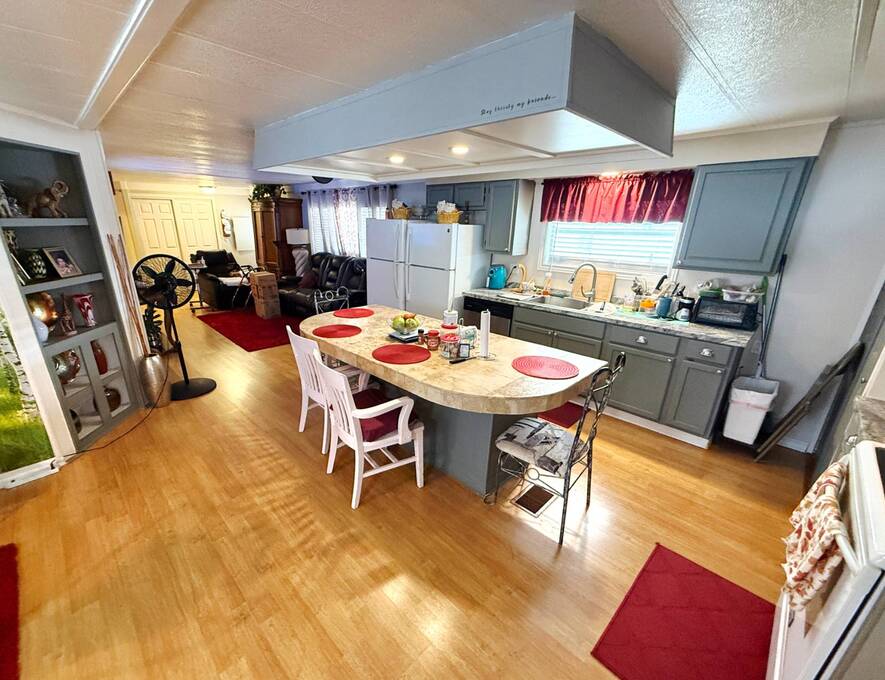 ... ...This (Appx 1,500sqft) home is built like a house. 3 large bedrooms. 2 full bathrooms, open concept with a huge NEW cabinet lined kitchen with granite countertops and an ISLAND. with recessed lighting. BRAND NEW Central heat and A/C system, 2 storage sheds, FIREPIT in the big "FENCED IN BACK YARD with a chain linked fence. (2) 40lb dogs are permitted. There is an attached COVERED PATIO with BBQ which is excellent for grilling and gatherings. 9 appliances which include 4 refrigerators, 2 in the home and 2 in the shed. Glass top range. Brand new washer and dryer. Laminate floors thru out, new doors, new blinds and best of all.... Located in the esteemed "GATED" **Bay Ranch**, a premier 5-star 55+ community, residents enjoy a wealth of amenities in the active clubhouse. Dive into the large sparkling swimming pool, challenge friends to shuffleboard, or participate in various social gatherings and recreational activities. Plus, there's a "hard-to-find" designated storage area for RVs, campers, boats, and jet skis-rarely available in many parks! With maintenance-free living, you can focus on enjoying the great lifestyle Bay Ranch provides, all while being mere minutes from the beach, shopping, the VA hospital, and the vibrant attractions of Tampa, St. Petersburg, Clearwater, and beyond. ............TEXT OR CALL THE LISTING AGENT to view ...this great investment.