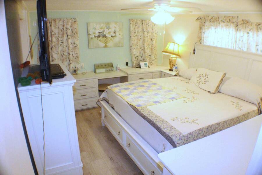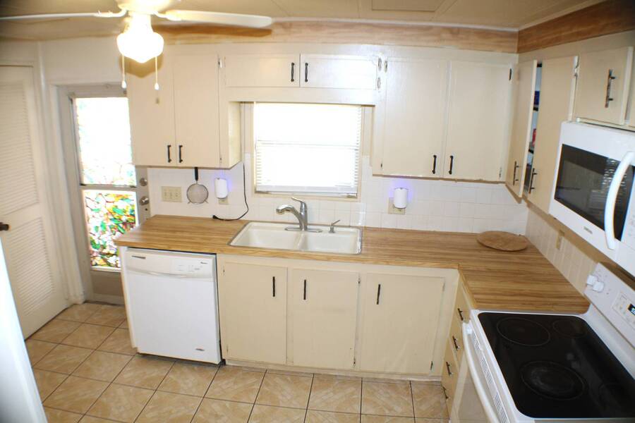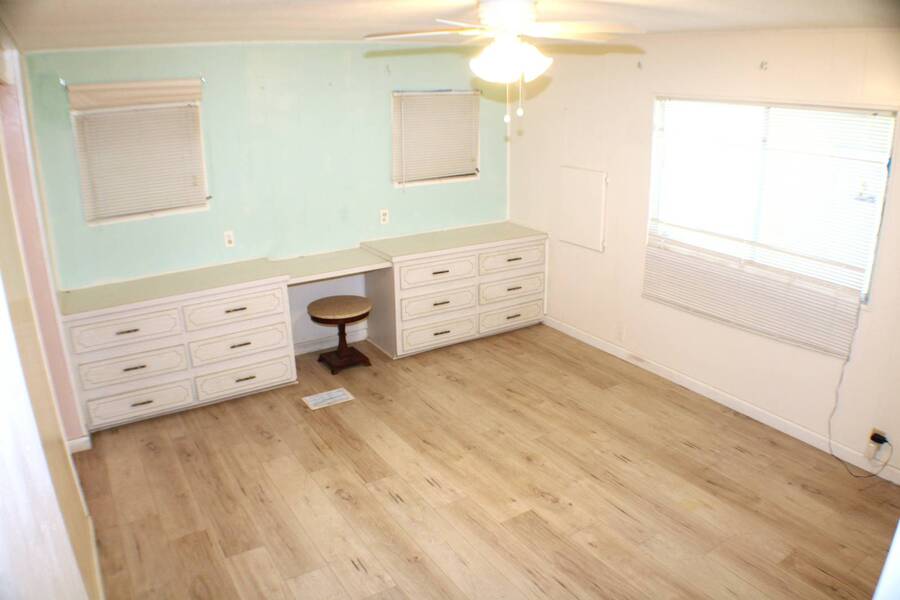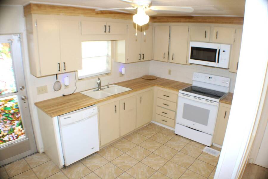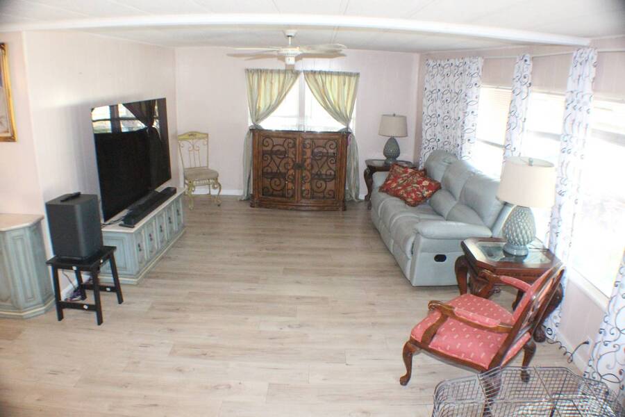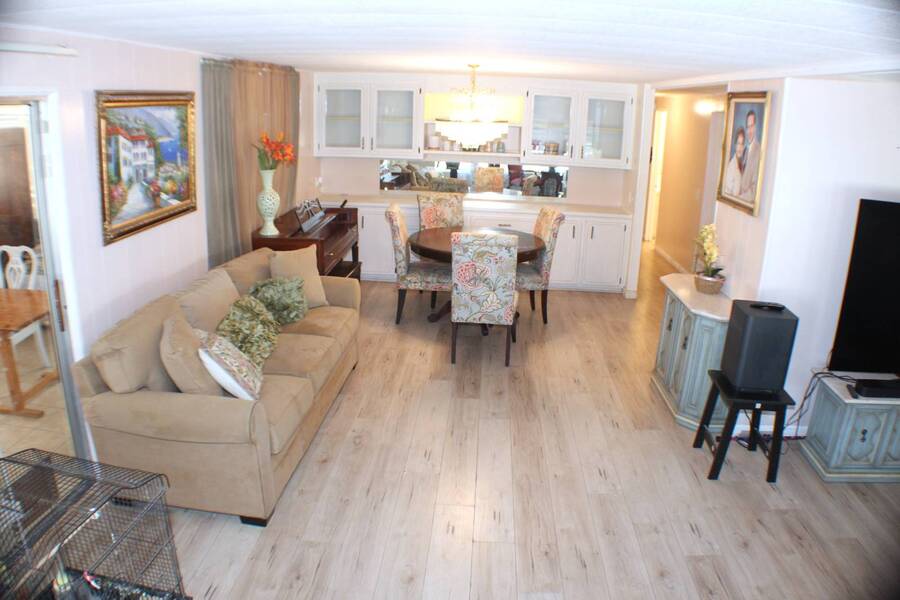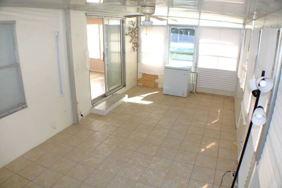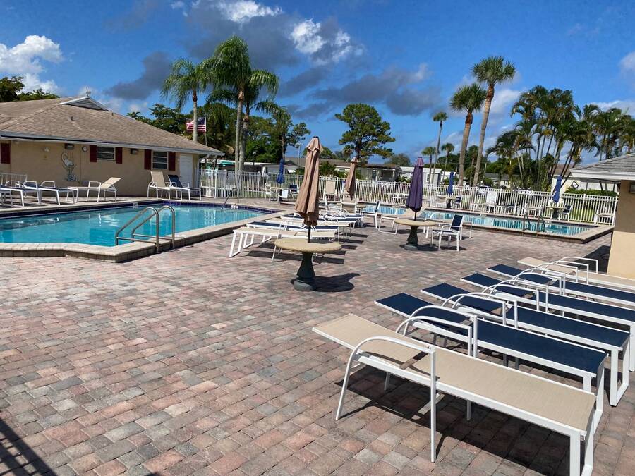 Impeccably-maintained 2/2 in 55+ land-lease Maralago Cay. Enjoy the shade of your tamarind and mango trees, or relax in the spacious all-season lanai (with window unit). Recent laminate flooring and re-done subfloors throughout. Twelve miles to PBIA, 2 miles to JFK Hospital, and 10 minutes to beaches. Land lease $1290 includes lawn mowing/irrigation and water, plus security gates and all the amenities: tennis, pool, billiards, clubhouse, and professional property management. Second resident can be 40+.