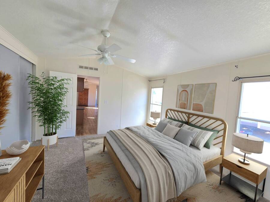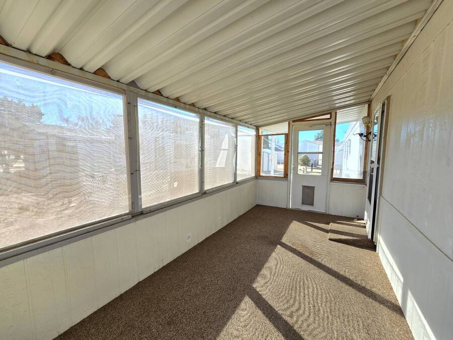 Well-cared-for home in Country West with a fenced yard and enclosed sunroom-priced to allow for your personal updates. A great opportunity to make it your own in one of the park's most desirable communities. Welcome to Country West-one of Chino Valley's most desirable 55+ communities. This 2 bedroom, 2 bath home offers a comfortable, easy-living floor plan with great natural light and a bright, open feel. The main living areas feature updated flooring, and the layout flows nicely for both everyday living and having guests. The kitchen provides plenty of cabinet space and functionality, while both bedrooms are well-sized with good separation for privacy. Outside, you'll find a covered carport, storage shed, and a fenced side yard-perfect for pets or a simple, low-maintenance outdoor space. The enclosed sunroom adds extra usable square footage and is a great spot to relax year-round. The home has been well maintained over the years and offers a great opportunity for a buyer to update flooring and interior finishes to their own taste. Country West is known for its welcoming atmosphere, active clubhouse, and convenient location close to shopping and services.