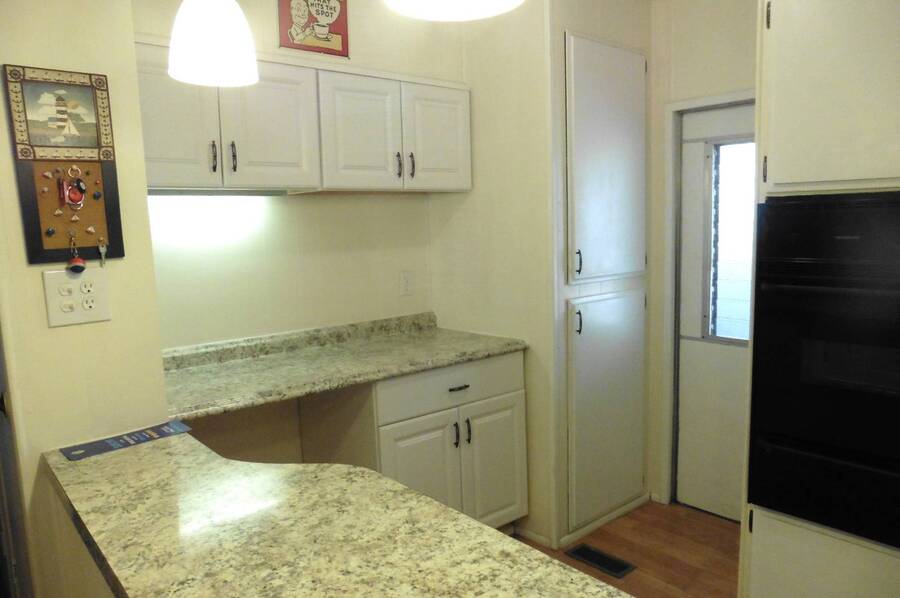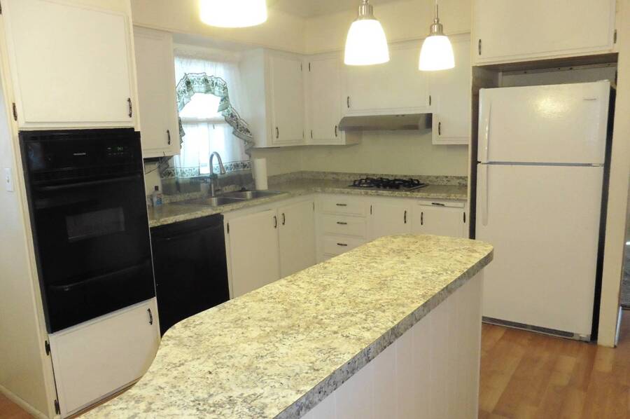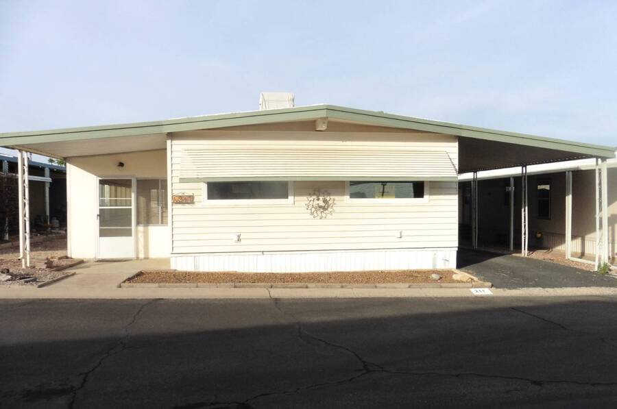 THIS CUTE AND CHARMING HOME HAS BEEN ALMOST COMPLETELY UPDATED! There are newer dual pane windows throughout and newer carpet and laminate flooring. The kitchen has a newer sink with faucet, range top, ventilation hood and countertops. There are newer light fixtures throughout the home and both bathrooms have been recently remodeled. You'll enter the home and walk into the spacious and bright front living room which can accommodate many friends and family. With the built-in double hutch in the dining area and the kitchen pantry, there's plenty of additional storage. The king-sized primary bedroom has an ensuite bathroom and two closets. You can access the huge newer deck either directly from the primary bedroom or from the outside stairs. Enjoy your morning coffee and evening cocktails on the huge deck. Both the oversized deck and large Arizona room are perfect for just relaxing or entertaining large groups. You can park 2-3 vehicles in the covered driveway. There are two good-sized sheds for your storage needs. The home is located across from the front clubhouse, pool and lake. Swan Lake Estates is a well-maintained and luxury gated 55+ community with a beautiful tree-lined and stocked lake which is perfect for walking your dog, hiking, picnics, fishing or just relaxing. It has two very friendly and socially-active clubhouses, two heated pools, a spa, pickleball courts, a library, an exercise room, billiard room and party/game rooms and much more. It is located on the near northwest side close to shopping, restaurants, transportation, entertainment, the Rillito River Walk, a major hospital and the freeway. Small pets are welcome. The space rent includes water, sewer and trash removal. RV storage is available for a nominal monthly fee.