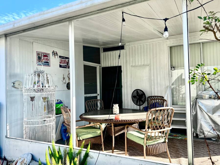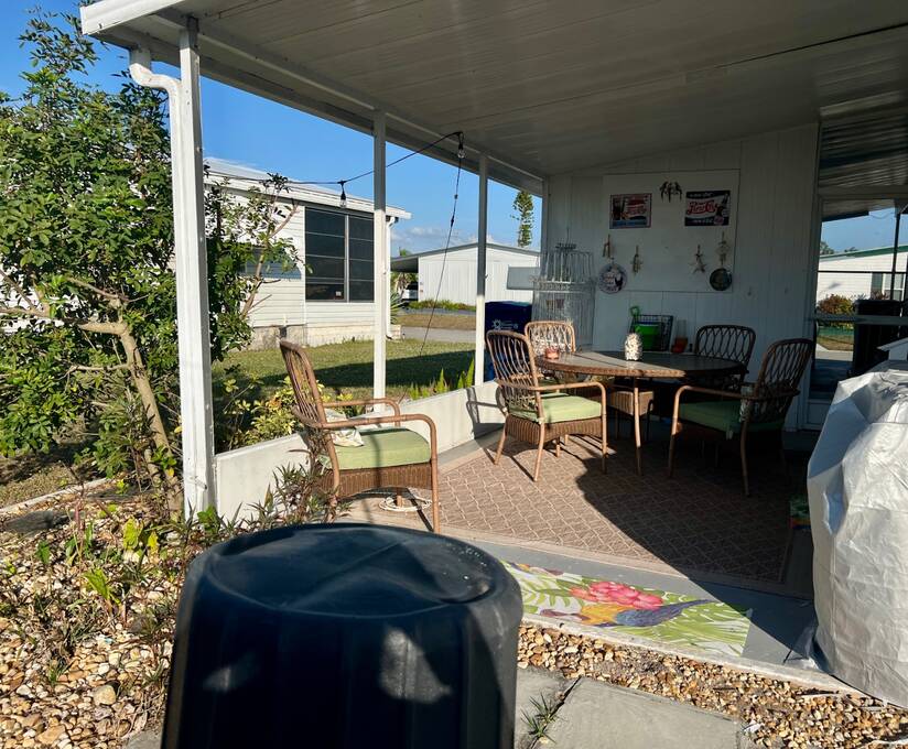 358 Tahitian Dr, North section of Colony Cove a 55+, large dog/golf cart friendly community on leased land. On-site Marina and Dog Park. Community approval with credit/background check. Do not let the size fool you; this home lives BIG! Featuring two additional outdoor living spaces for entertaining or to unwind in the open air! 2BD/2BA/1FLEX/1LANAI: Need 3 bedrooms or an office? No problem!! Florida/FLEX use room (10 x 14 ft with private entrance) can be an office/den/art/music room or the third bedroom. For your convenience, a 4 Point Insurance Inspection (currently insured) completed 07/2025 by licensed/insured inspector for the next four items: ~ROOF: Long life metal; (15 year) ~HVAC: 2016 Comfortmaker ~ELECTRIC: 2020; 125 Amp Square D panel ~PLUMBING: 2022 AOSmith water heater, CPVC/Copper pipe **OTHER FEATURES/UPDATES: ~MOSTLY FURNISHED: Spend your first night in comfort! ~APPLIANCES: Includes Kitchen appliances/washer/dryer ~FLOORS: Newer laminate floor covering (no carpet!) ~FLORIDA/FLEX ROOM: 10 x 14, hard windows, window AC, ceramic tile floor ~LAUNDRY/**LANAI: 12 x 16 with screens, includes washer/dryer **Some damage to lanai that must be repaired by buyer to meet park compliance estimated at $1500. ~PATIOS: 10 x 10 covered front patio and another block patio outside of rear lanai for a grill or fire pit ~STORAGE SHED: 8 x 10 with work bench/seasonal storage ~LARGE CARPORT: Parking for 2 vehicles ~LOCATION: Walking distance to park pool on a perimeter lot ~~ROOM DESCRIPTIONS: ~KITCHEN/EAT IN DINING: ample cabinetry including pantry; updated ceramic backsplash plus includes appliances. Eat-in dining area with ceiling fan. ~LIVING ROOM/FLORIDA ROOM: Large living room with lots of natural light plus ceiling fan. You will love the textured walls (no paneling!) Sliding glass door to Florida Room. -FLEXIBLE USE FLORIDA ROOM: Can be 3rd bedroom, den, office or craft/music room. Built-in window AC keeps it cool! Private entrance from patio. ~2 BEDROOMS/2 FULL BATHS: ~~OWNERS BEDROOM SUITE: -EN-SUITE BATH; Large room and big closet plus ceiling fan. Water closet with commode, separate vanity sink and step-in shower. ~~GUEST BEDROOM/GUEST BATH: -GUEST BEDROOM is currently being used as an office. Sliding glass door exits to the screened lanai. -GUEST BATH: PVC step-in shower with molded shelves/seat, comfort height commode, ceramic tile floor ~ ~MONTHLY LOT RENT: $1210 (market rate TBD by community; subject to change) covers all of the community amenities plus almost all other typical monthly expenses such as water, sewer, trash pickup, recycling, all property taxes plus lawn care. The active adult lifestyle is designed to help you enjoy the finer things in life! ~9 community buildings includes 4 meeting halls ~6 community pools ~2 fitness centers ~Over 20 ponds/lakes/inlets ~Marina on the Manatee River: 75 slips/boat trailer storage (nominal fee) ~Fishing pier, outdoor pavilion, fireplace ~Fenced Dog Park ~ 2 Nature Preserves; Micro forest to walk, Mangroves to kayak ~ Billiards Room ~Woodworkers Shop ~Arts/Crafts, game/card rooms ~Libraries ~Pickle-ball, tennis, shuffle, horseshoe courts ~45+ miles of roadways for walking/riding ~24/7 roving courtesy patrol ~Planned activities every day including holidays ~30+ clubs to join ~Golf cart accessible shopping plaza at Creekside Commons Florida MH Sales, LLC cannot guarantee or warrant the accuracy of this information, measurements or condition of any property. Measurements are approximate. All homes are sold AS IS and personal or professional inspection is encouraged. The buyer assumes full responsibility for obtaining all current rate of lot rent fees and pass-on costs, rules/regulations, pet policies, etc., associated with the park from the community administrative office. ~BEACHES: Over 7 miles of free, sugar sand beaches at Anna Maria Island plus Longboat, Lido and Siesta Key are less than 1 hour away!