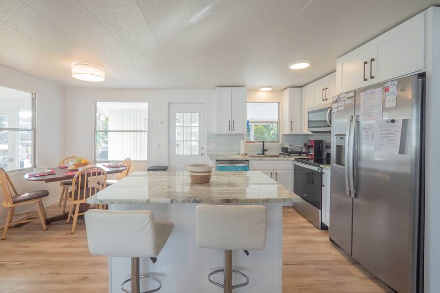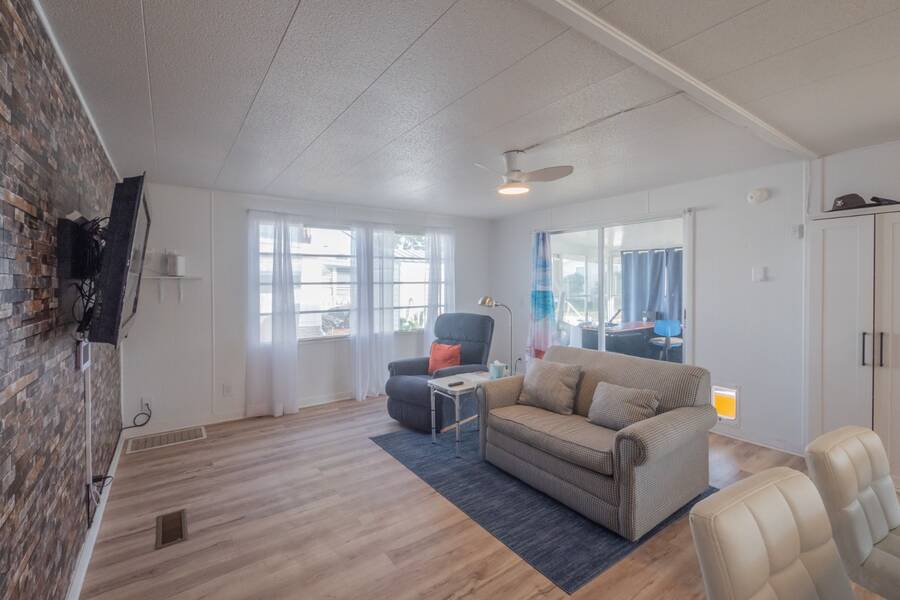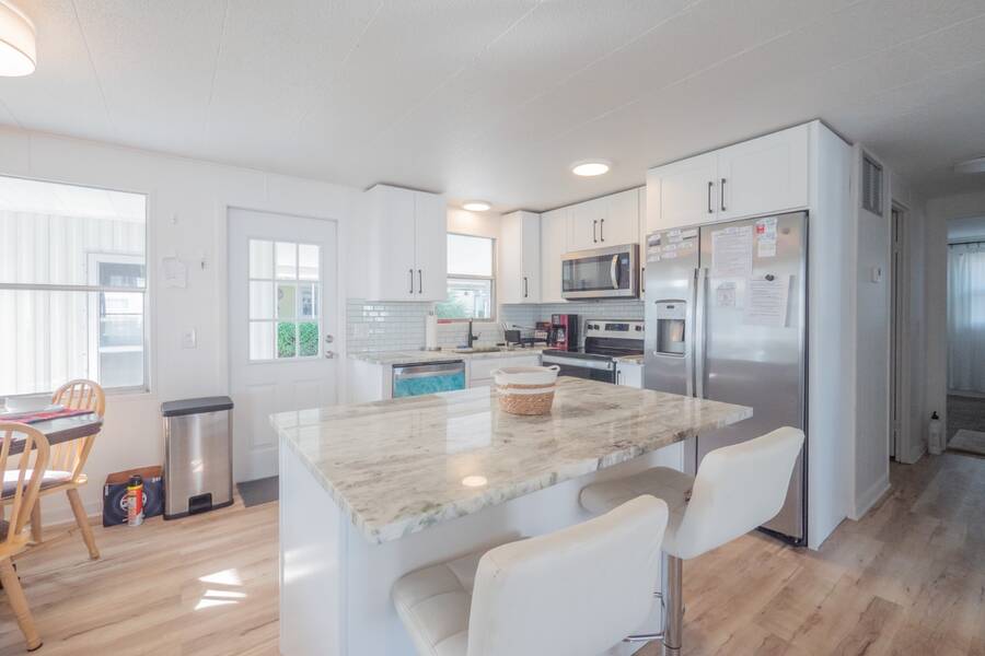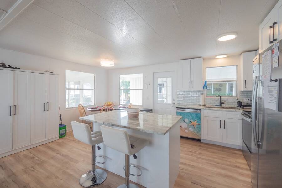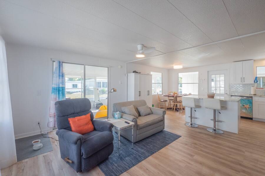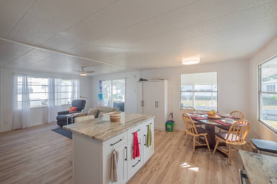 Welcome to this beautifully updated canal-front home in the desirable Mid Florida Lakes community of Leesburg. This 2-bedroom, 2-bath residence features many upgrades including luxury vinyl plank flooring throughout, shaker cabinets and granite in kitchen with stainless steel appliances, new light fixtures, updated bathrooms with new fixtures and sinks, newer AC, and more!. Enjoy peaceful water views and direct canal access to Haines Creek and the Harris Chain of Lakes. The home is being offered fully furnished, including washer and dryer, with an optional SeaCycle for effortless enjoyment of the waterways. Located in an active 55+ community with a clubhouse, pool, and social amenities, this home is perfect for year-round or seasonal Florida living.