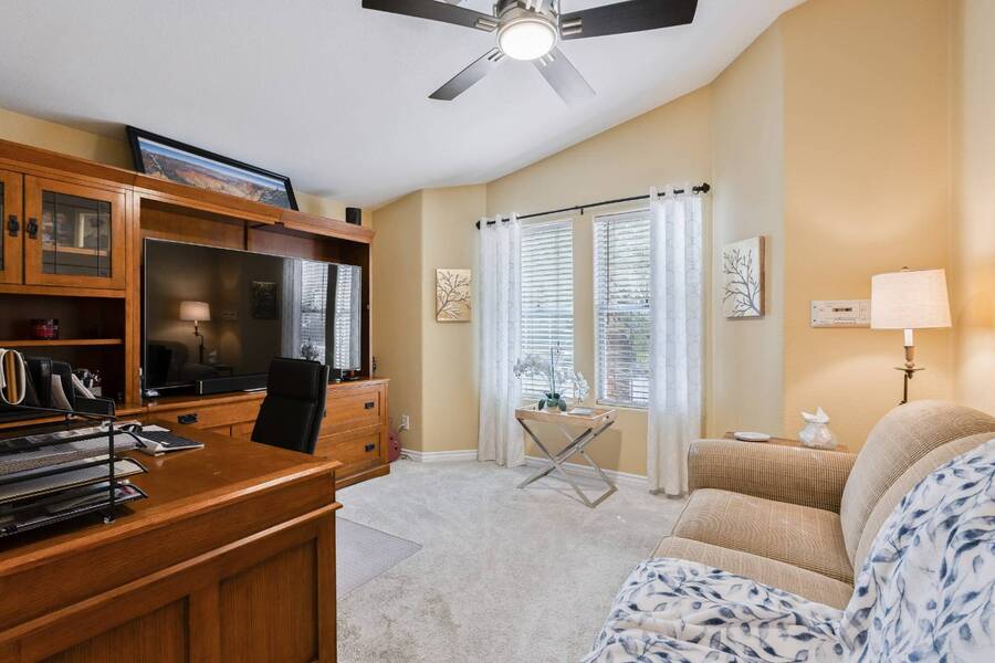 Stunning remodeled home featuring 2 bedrooms, 2 bathrooms, a den, and a bonus Arizona room. This home showcases quartz countertops, crisp white cabinets, new appliances, 5" baseboards, and upgraded fixtures. Relax or entertain in the great outdoor space, only steps from the heated resort-style pool and exceptional world-class amenities. Don't miss this one, you will regret it! Call today Gorgeous Remodel New Roof 2024 Excellent Location