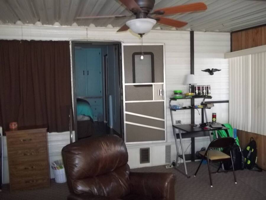 Lot Rent Paid Until Dec 2026!Close to Community Center! AZ ROOM! L-Shaped Kitchen, Built in Microwave, Fully Furnished, Laminate Floors, Plenty of Storage, Recliners, Sofa Sleeper, Ceiling Fans, Queen Bed, Built in Drawers, Laundry Room with W/D, Extra Half Bath, Step in Shower, Outdoor Living Area, Central A/C & Heat.* Some items pictured may not convey. Lot Rent is noted as a monthly estimate on line but is due Annually in December each year.