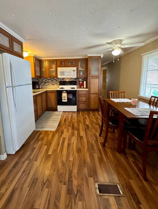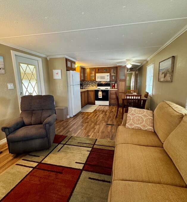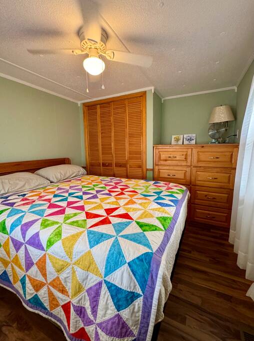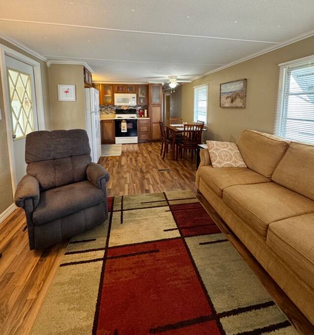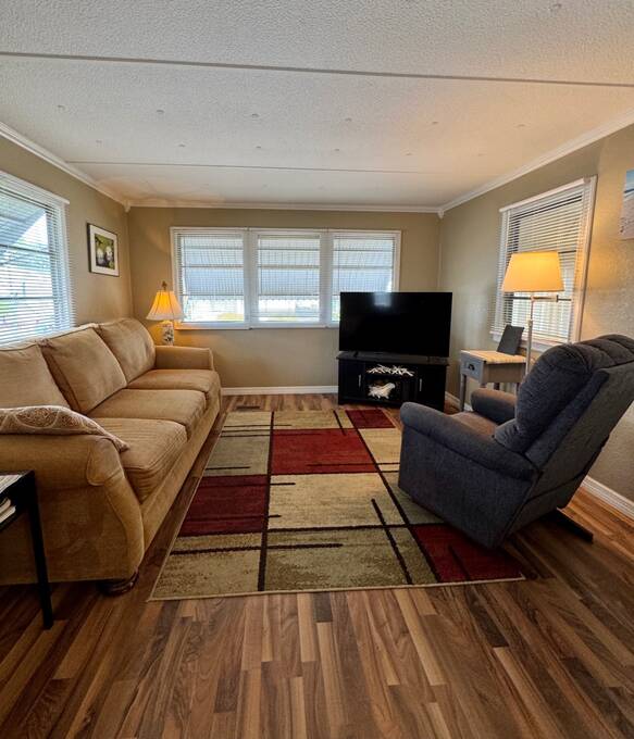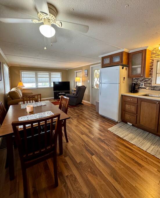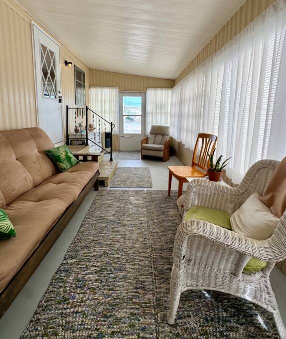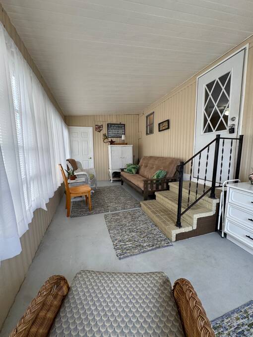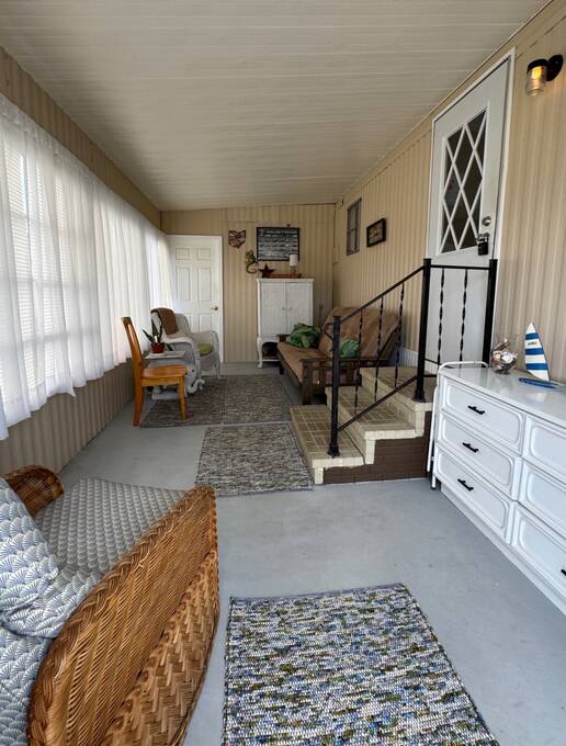 NORTHGATE ACTIVE ADULT COMMUNITY WITH a SWIMMING POOL/CLUBHOUSE; Enjoy Florida's SPACE COAST. Begin a life of leisure ~ VIEW THE PICTURES...VISIT THE HOME. Call to take a look at this move-in ready, CLEAN, well cared for, comfortably Furnished home with kitchen appliances, washer (2024) and dryer, along with some added kitchen and bathroom essentials. WOW, the stylish downstairs addition offers its own private air-conditioned space, offering an inviting private bedroom with its own door for entry. The glass-enclosed sunroom is a perfect spot for relaxing and soaking in some Florida sunshine! This home presents some QUALITY FEATURES and Updates outside and inside: •Metal roof over •Newer Skirting (2023) •Central A/C & Heat pump (2019) •Partial Tie down enhancements (2019) •Pex Plumbing throughout the home PLUS whole house water filter system (2024) •Exterior painted with addition of insulation on back wall of home •Golf Cart or small vehicle pad •Glass enclosed sunroom with newer Screens •Newer 3/4 inch subfloors with 2x4's added to flooring perimeters with laminate top coat •Home interior and ceiling freshly and tastefully painted •Charming kitchen with frosted glass wood cabinetry & pantry, added backsplash PLUS a dedicated outlet •18 New mini blinds •Bathroom offers a large 6 drawer vanity, Newer toilet and appealing sconce lighting •Smoke alarm **Come take a look** NORTHGATE is an ACTIVE adult community. All new owners must apply and be approved to purchase through Parakeet communities' website, $50 per person. The current monthly lot fee on this home, is $665 with a security deposit to match. This fee includes trash/recycle/yard waste and use of the park's amenities. Water is metered monthly. Lawn care is the owner's responsibility. Park has a clubhouse offering Bingo and miscellaneous events during each month, and a swimming pool! Non-aggressive dog breeds (2, 50lbs max ) permitted with park approval. NO RENTING of a home is permitted. Storage available for trailers/boats. (check with the office for fees and availability ) *CASH PURCHASE ONLY PLUS CLOSING COSTS ON OLDER UNITS** OUT OF TOWN!?!? NO WORRIES, SUNSET CAN DO VIRTUAL SHOWINGS, AND WE ARE ABLE TO DO OUR COMPANY'S PAPERWORK REMOTELY. FEEL FREE TO CALL, TEXT, OR EMAIL ME FOR MORE DETAILS. All listing information is deemed reliable but not guaranteed and should be independently verified through personal inspection by appropriate professionals. We do not and cannot guarantee or warrant the accuracy of this information or condition of this property. Measurements are approximate. The buyer assumes full responsibility for obtaining all current rates of lot rent, fees, and pass-on costs. Additionally, the buyer is responsible for obtaining all rules, regulations, pet policies, etc., associated with the community, park, or home from the community/park manager. We are not responsible for quoting of said fees or policies.