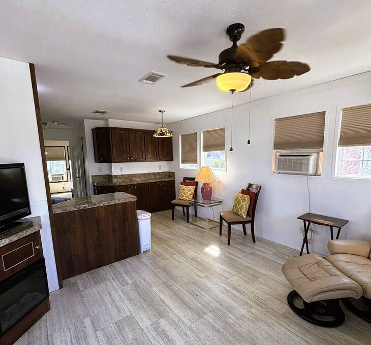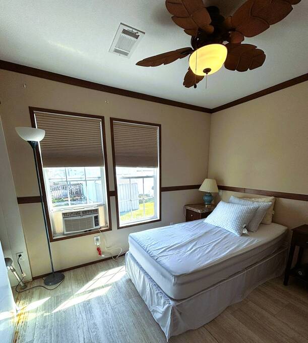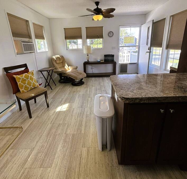 Custom-Built 2017 Park Model Home - Fully Furnished with Modern This beautifully designed 1-bedroom, 1.5-bathroom park model home, built in 2017 to Category 2 hurricane standards, offers comfort and peace of mind. Enjoy energy-efficient double-pane windows, a spacious kitchen with ample cabinetry, and ceiling fans in both the living room and bedroom. The outdoor space features a large deck (added in 2019) with a retractable awning, perfect for relaxing or entertaining. Additional upgrades include a surge protector on the electric box, a washer and dryer, a 10x10 storage shed, and a 10x12 gazebo with screens and a wind barrier for extra outdoor comfort. Perfect for a winter retreat or full-time living. Pet-Friendly 55 Plus Community of Whispering Palms Resort just a few minutes from Wabasso Beach and downtown Sebastian, Florida nightlife. Whispering Palms Resort is a Pet-friendly community with a vibrant active lifestyle. Two heated pools for year-round relaxation and stay fit with water exercise classes. Tennis and pickleball courts for fun and fitness. The Game room has a poker table and pool tables. Horseshoes, shuffleboard, and pétanque for friendly competition. A community thrift store for treasure hunting and giving back. In the Main Hall engaging in Social Activities - Bingo nights and ice cream socials and Dinner gatherings for delightful memories. Hobby groups like knitting, crocheting, and card games to spark creativity. Lot Rent is Only $790 per month which includes weekly trash and recycling pickup. Homeowners are responsible for their lawn care and ALL Utilities. Each person living in the home must be approved by the office prior to purchasing the home. The Perfect Retirement Destination!