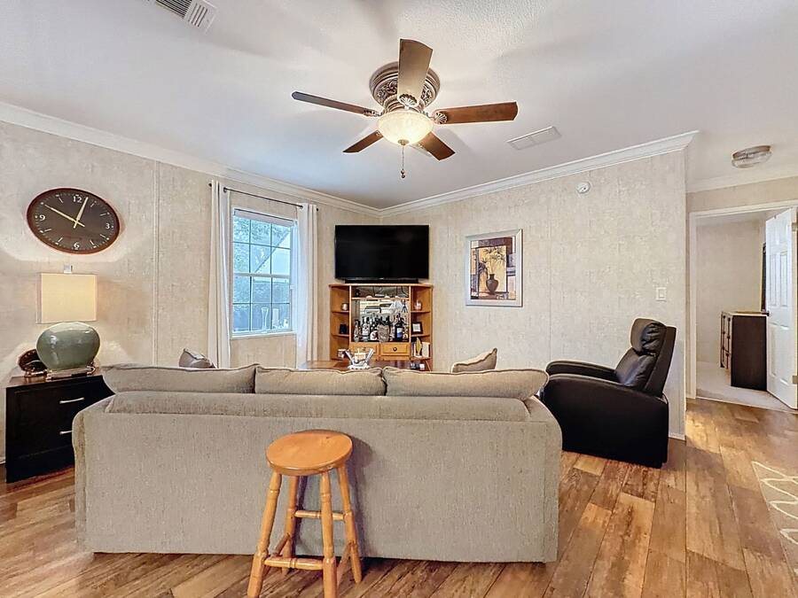HUGE PRICE IMPROVEMENT! Move-in ready 2-bedroom, 2-bath manufactured home, built in 2012, situated on 1.14 acres of peaceful country living with NO HOA and NO LOT RENT-yet conveniently close to town! Bring your RV, as the property is equipped with 50-AMP electric, water hookup, and an RV canopy. This IMMACULATE HOME offers an open floor plan, lots of cabinets, crown molding, stainless appliances and is being sold FULLY FURNISHED, including the washer and dryer. Additional upgrades include a WATER SOFTENER, GUTTERS, and an AWNING OVER THE FRONT PORCH. The FULLY FENCED PROPERTY with GATED ACCESS offers exceptional privacy, with the BACKYARD COMPLETELY SECLUDED by an extended-height fence. Enjoy your own private outdoor retreat featuring a SPA and HEATED OUTDOOR SHOWER, FIRE PIT with SEATING AREA, 2020 STORAGE SHED, plus additional storage. Ideally located just a short drive to Disney, Universal Studios, Busch Gardens, Lowry Park Zoo, Hard Rock Casino, 4 international airports and Florida's beautiful beaches! A rare find-schedule your showing today!