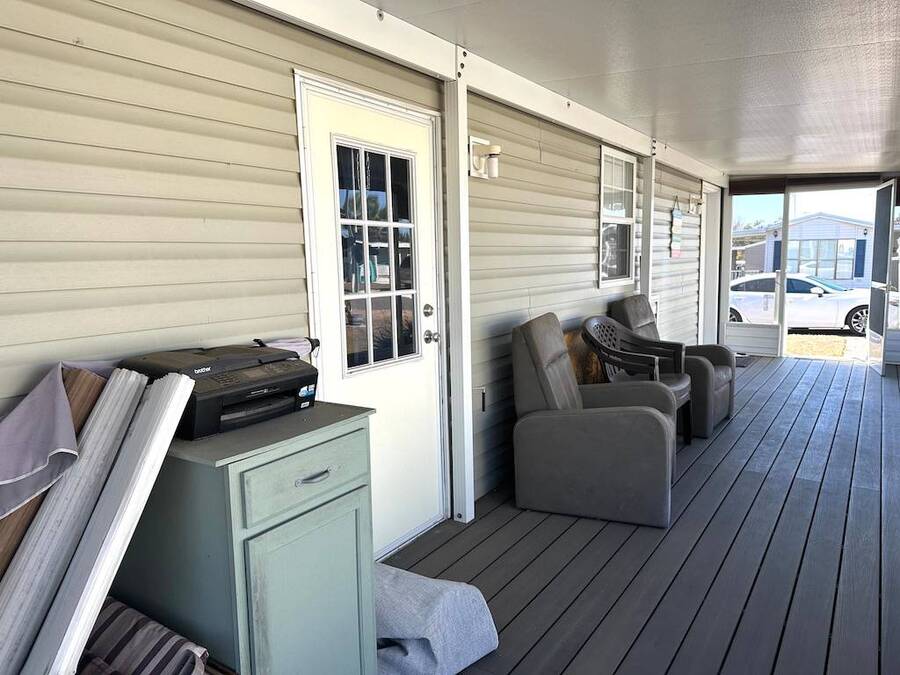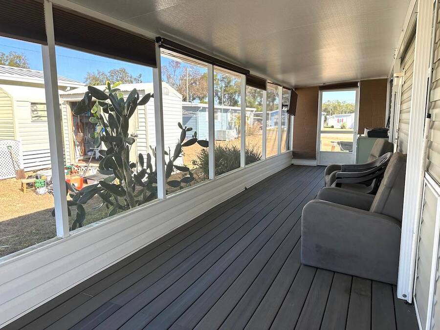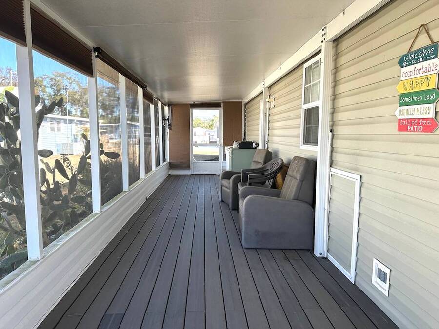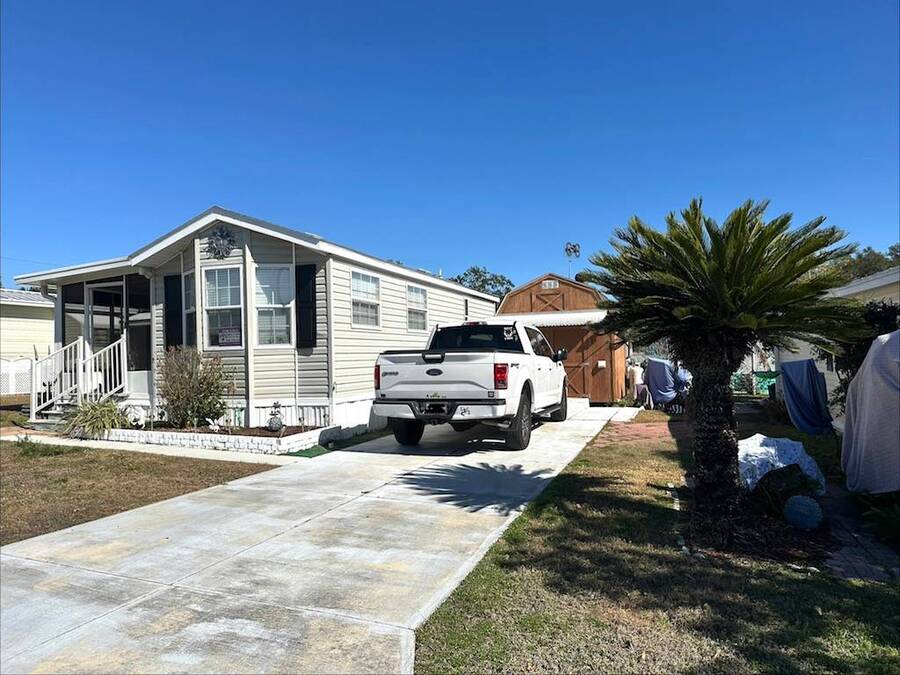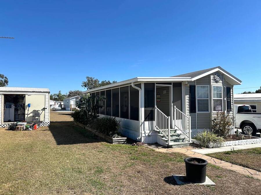 THIS BRIGHT AND UPDATED 2018 PARK MODEL OFFERS A COMFORTABLE AND LOW-MAINTENANCE LIFESTYLE WITH EVERYTHING YOU NEED ALREADY IN PLACE! The 1-bedroom, 1-bathroom home features an open, airy feel with no carpeting, making it easy to keep clean and move-in ready. All major systems were installed in 2018, giving peace of mind for years to come, and gas connections add extra convenience. Outside, you'll enjoy thoughtful extras like a Char-Broil grill and a water system designed for rainwater runoff, perfect for outdoor use. This well-kept home is a great option for anyone looking for an affordable, updated retreat that's ready to enjoy right away. **Home is being sold furnished, as described.** Sunburst Mobile Home Park is a 55+ community and RV resort in Dade City, FL. This community is full of amenities and activities. The 80/20 rule applies where the primary resident must be 55+ and the secondary resident may be 45+. A maximum of two pets are allowed up to 25 pounds. Conveniently located in the heart of Dade City on Highway 301, with quick access to restaurants, entertainment and shopping! Lot rent $605 per month and includes water, sewer, trash and lawn. Measurements are L x W KITCHEN: 8 x 12 Laminate Flooring Window Coverings Chandelier Light Refrigerator - GE Range - GE Microwave - GE - Built-in Wood Cabinets Eat-in Kitchen - Table with 2 Chairs Pantry - 1 LIVING ROOM: 9 x 12 Laminate Flooring Window Coverings Ceiling Fan with Light Love Seat MAIN BATH: 7 x 5 Laminate Flooring Window Coverings Single Sink Walk-in Shower Mirrored Medicine Cabinet Comfort Height Toilet Linen Storage PRIMARY BEDROOM:8 x 8 Laminate Flooring Window Coverings Ceiling Fan with Light Closet: Built-in Queen Size Bed Bedside Table(s) - 2 Lamp(s) - 2 TV SCREEN ROOM:31 x 7 TV Chest Freezer Located Off: Side of Home LAUNDRY: Washer - Centennial Location: Shed SHED: 9 x 9 Workbench Shelving Loft Area PATIO: 12 x 16 Concrete Pavers EXTERIOR: Vinyl Siding Double Pane Tilt Windows Gutters Single Carport Roof Type: Shingle (2018) AC: Frigidaire (2018) COMMUNITY: Clubhouse with Community Room Heated Swimming Pool Shuffleboard Courts Horseshoes Pickleball Courts Putting Green Laundry Facilities Fishing Lake The above information and the condition of this property is not guaranteed. Listing description is based on information provided by the Seller. All measurements are approximate. It is the Buyer's responsibility to confirm condition/age and all measurements. Current fees, current lot rent, rules and regulations, or pass-on costs associated with this home, and particular park should be confirmed, by the Buyer, with the community office. This mobile home is sold in "As Is" condition with no warranties or guarantees.