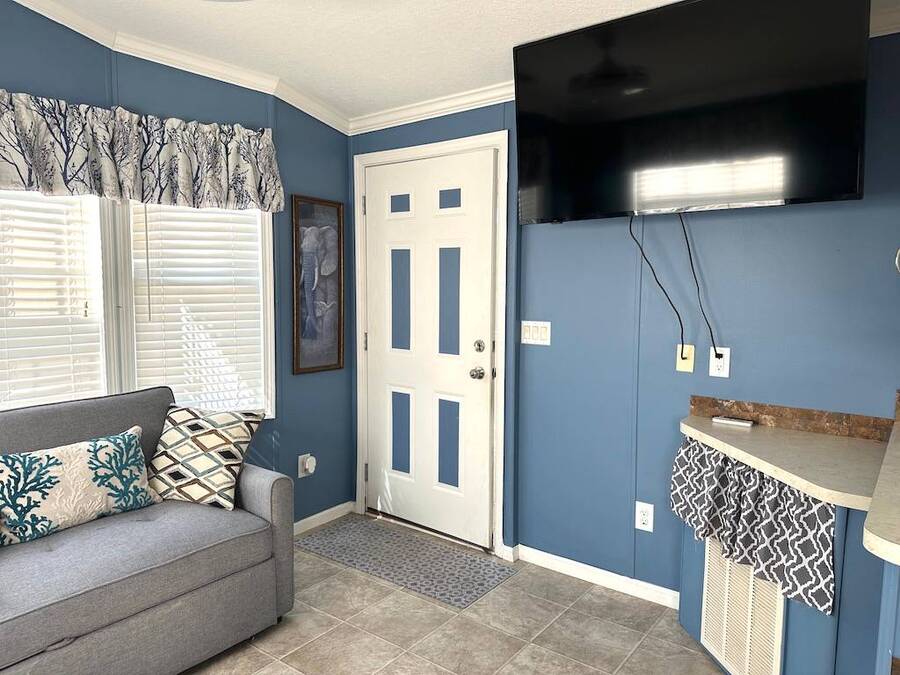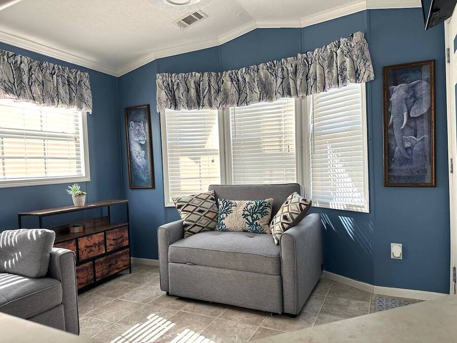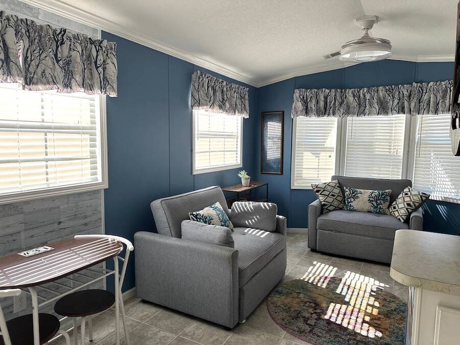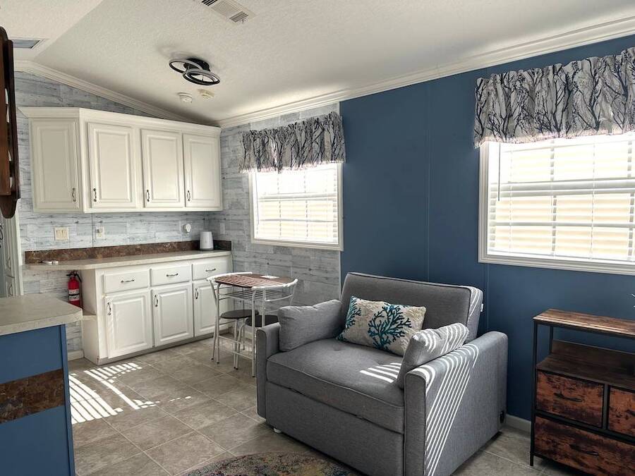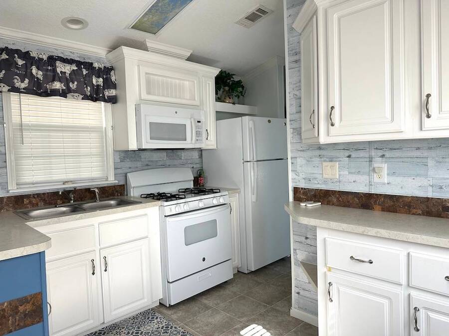THIS BRIGHT AND UPDATED 2018 PARK MODEL OFFERS A COMFORTABLE AND LOW-MAINTENANCE LIFESTYLE WITH EVERYTHING YOU NEED ALREADY IN PLACE! The 1-bedroom, 1-bathroom home features an open, airy feel with no carpeting, making it easy to keep clean and move-in ready. All major systems were installed in 2018, giving peace of mind for years to come, and gas connections add extra convenience. Outside, you'll enjoy thoughtful extras like a Char-Broil grill and a water system designed for rainwater runoff, perfect for outdoor use. This well-kept home is a great option for anyone looking for an affordable, updated retreat that's ready to enjoy right away. **Home is being sold furnished, as described.** Sunburst Mobile Home Park is a 55+ community and RV resort in Dade City, FL. This community is full of amenities and activities. The 80/20 rule applies where the primary resident must be 55+ and the secondary resident may be 45+. A maximum of two pets are allowed up to 25 pounds. Conveniently located in the heart of Dade City on Highway 301, with quick access to restaurants, entertainment and shopping! Lot rent $605 per month and includes water, sewer, trash and lawn. Measurements are L x W KITCHEN: 8 x 12 Laminate Flooring Window Coverings Chandelier Light Refrigerator - GE Range - GE Microwave - GE - Built-in Wood Cabinets Eat-in Kitchen - Table with 2 Chairs Pantry - 1 LIVING ROOM: 9 x 12 Laminate Flooring Window Coverings Ceiling Fan with Light Love Seat MAIN BATH: 7 x 5 Laminate Flooring Window Coverings Single Sink Walk-in Shower Mirrored Medicine Cabinet Comfort Height Toilet Linen Storage PRIMARY BEDROOM:8 x 8 Laminate Flooring Window Coverings Ceiling Fan with Light Closet: Built-in Queen Size Bed Bedside Table(s) - 2 Lamp(s) - 2 TV SCREEN ROOM:31 x 7 TV Chest Freezer Located Off: Side of Home LAUNDRY: Washer - Centennial Location: Shed SHED: 9 x 9 Workbench Shelving Loft Area PATIO: 12 x 16 Concrete Pavers EXTERIOR: Vinyl Siding Double Pane Tilt Windows Gutters Single Carport Roof Type: Shingle (2018) AC: Frigidaire (2018) COMMUNITY: Clubhouse with Community Room Heated Swimming Pool Shuffleboard Courts Horseshoes Pickleball Courts Putting Green Laundry Facilities Fishing Lake The above information and the condition of this property is not guaranteed. Listing description is based on information provided by the Seller. All measurements are approximate. It is the Buyer's responsibility to confirm condition/age and all measurements. Current fees, current lot rent, rules and regulations, or pass-on costs associated with this home, and particular park should be confirmed, by the Buyer, with the community office. This mobile home is sold in "As Is" condition with no warranties or guarantees.
