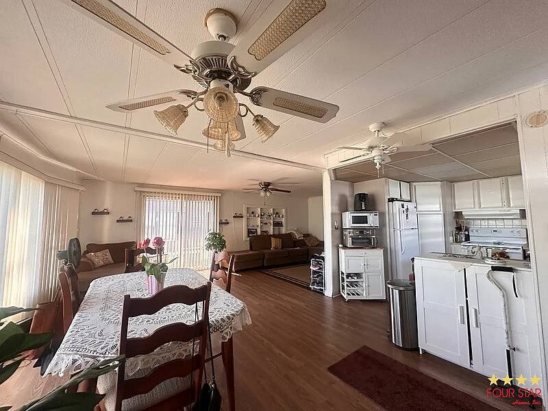 Welcome home to this spacious, beautifully maintained home located in the desirable Wood Dale Community in Zephyrhills, Florida. Priced to sale $49,500. This small, quiet park is perfectly tucked away, yet close to everything you need! Restaurants, CVS, shopping, and more are just minutes away. The community is safe for walking and pet-friendly, making it a wonderful place to call home. Step inside this 1,260 sq. ft. open and airy home and enjoy the generous room sizes throughout. The bright white kitchen sits to the right as you enter and features a large window that fills the space with natural light. This home is perfect for anyone who loves room to breathe and entertain. Home Features, 2 very large bedrooms, 2 full size bathrooms, open concept living and dining room, dining room with 6 large windows for beautiful, natural light, living room with patio doors for even more sunshine, laminate flooring throughout most of the home, a spacious primary suite with a walk in closet, and private bathroom. Includes a bonus room off the second bedroom, ideal as a third bedroom, office or cozy reading or sitting room. Air conditioner is 8 years old. This lovely move in ready home truly checks all the boxes, and will not last long. Come see it, fall in love, and make it yours.