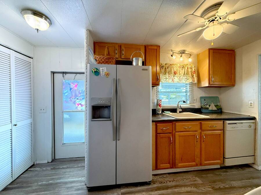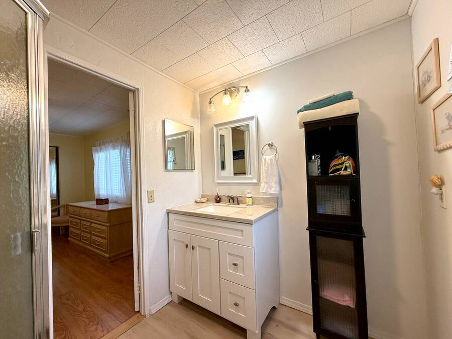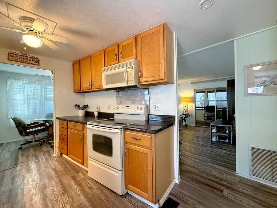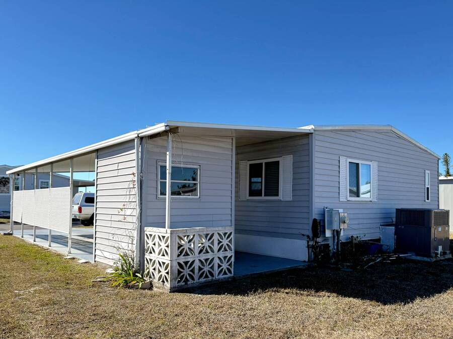 Affordable Florida living is within reach at 18 Date Street in Bradenton, Florida, offered at an amazing price of $29,000 in the welcoming Terra Palms community. This 2 bedroom, 2 bathroom home provides a practical layout with comfortable living space and plenty of potential. Vinyl flooring runs throughout the home, though it is not seamless, giving each room its own defined character. The main living area offers a bright and open feel, creating a comfortable space for relaxing or entertaining. The kitchen is both functional and inviting, featuring beautiful cabinetry, attractive countertops, and a deep sink positioned beneath a window that allows for natural light while you cook or clean. A pantry adds convenient storage for groceries and kitchen essentials, helping keep the space organized and efficient. The primary bedroom is generously sized and includes a private ensuite bathroom for added privacy and convenience. The second bedroom is ideal for guests, an office, or additional living space, with a nearby full guest bathroom that is easily accessible. Outside, a covered carport provides sheltered parking and protection from the Florida sun and rain, along with easy entry into the home. Terra Palms offers enjoyable community amenities including a clubhouse, swimming pool, shuffleboard courts, and organized activities that make it easy to meet neighbors and stay active. The location is convenient to shopping, dining, medical facilities, and just a short drive to some of Florida's beautiful Gulf beaches. At $29,000, this home presents an excellent opportunity for affordable seasonal living or full-time residence in Bradenton. Terra Palms is a large, gated community highly sought after in the Bradenton area due to the lot rent including the following services, cable TV, high speed internet, lawn care and sewer. The park has a new pickleball court, bocci ball, horseshoe pits, shuffleboard, swimming pool, recycling and trash removal. There is a lot of activity going on in this community with live entertainment and parties for every occasion. Terra Palms is a Gated 55+ Community. Home sales do not last long in this community. All listing information given to us is considered appropriate and reliable but always recommend a home inspection by independent companies who specialize in manufactured mobile homes. We cannot guarantee the accuracy of the information given to us or the condition of the home. Lot rents are determined by the community office not our company.
