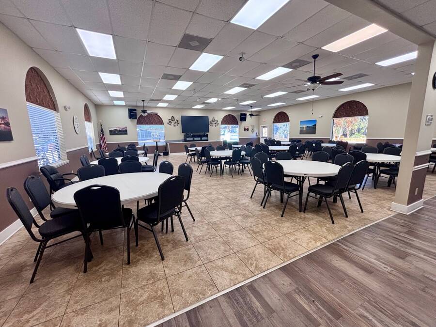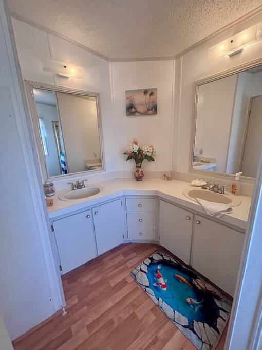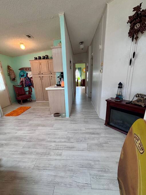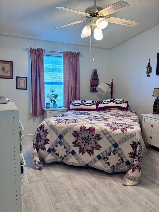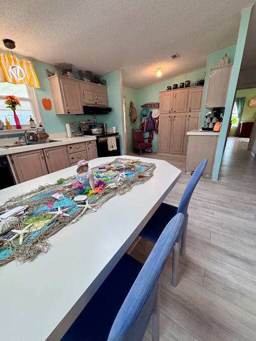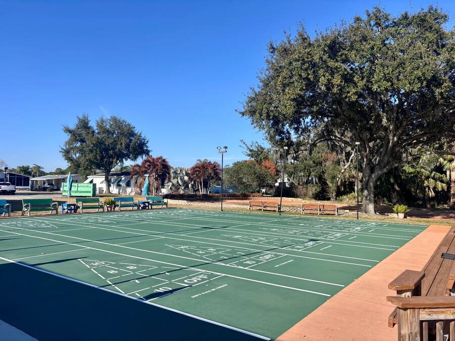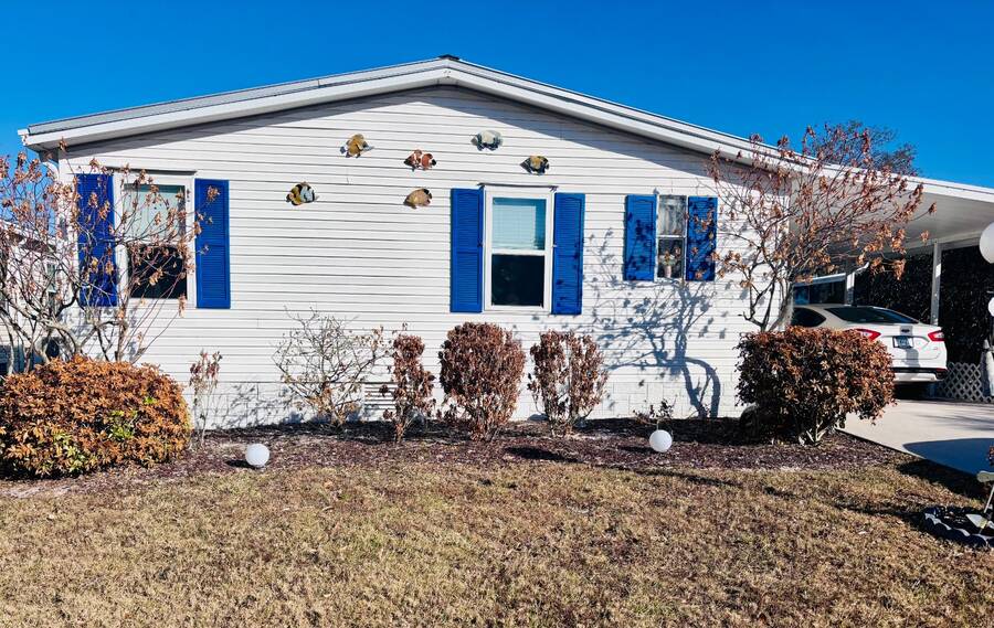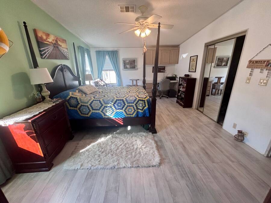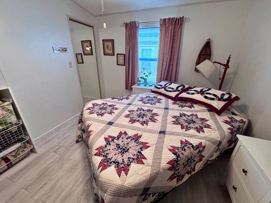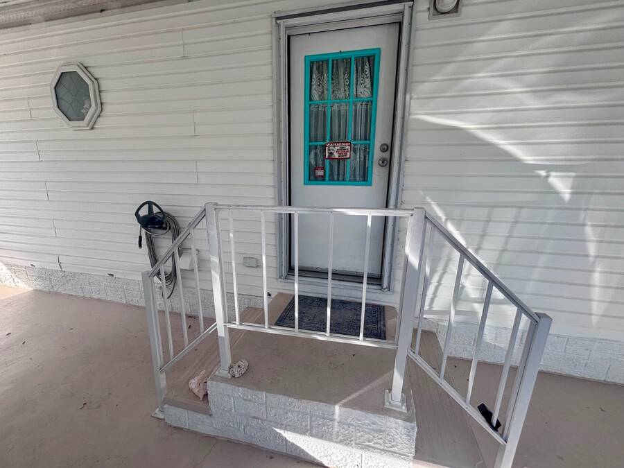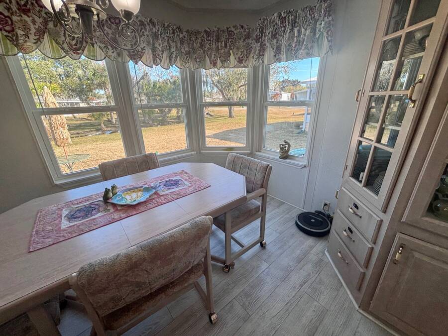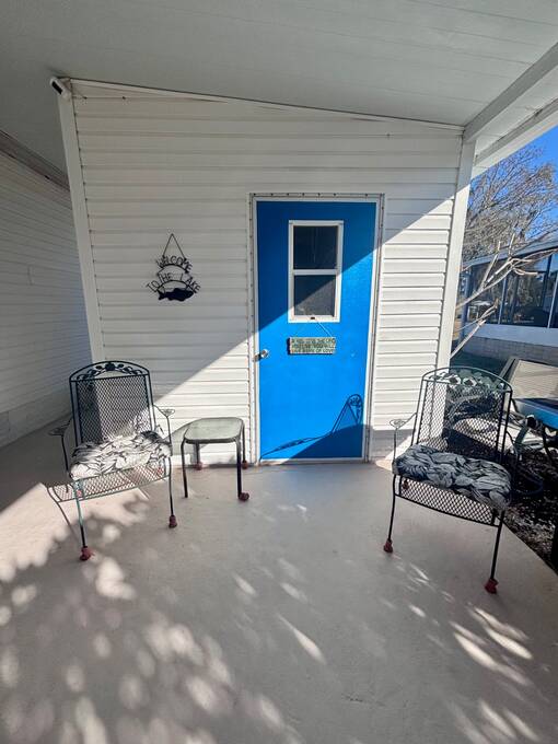 Welcome to easy Florida living in this beautifully updated 2-bedroom, 2-bath mobile home featuring a bright, open floor plan designed for comfort and entertaining. The spacious living and dining areas flow seamlessly together, enhanced by all-new flooring throughout - no carpet anywhere for a clean, modern feel and very pet friendly. The kitchen opens to the main living space, making it perfect for hosting or everyday living. Step through elegant French doors into your screened-in patio, where you can relax and enjoy peaceful water views and Florida breezes year-round. The large backyard offers plenty of space for gardening, pets, or simply soaking up the sunshine. Major updates provide peace of mind, including a newer roof, A/C, and water heater.Stackable washer and dryer is located inside the home, however there are hooks in the shed as well. Located in a desirable gated 55+ community of Island Lakes, residents enjoy resort-style amenities including a pool, spa, clubhouse, fitness center, and more. Lot rent includes trash service and cable, adding extra value and convenience. Whether you're looking for a seasonal retreat or full-time residence, this move-in-ready home offers comfort, style, and a lifestyle you'll love.