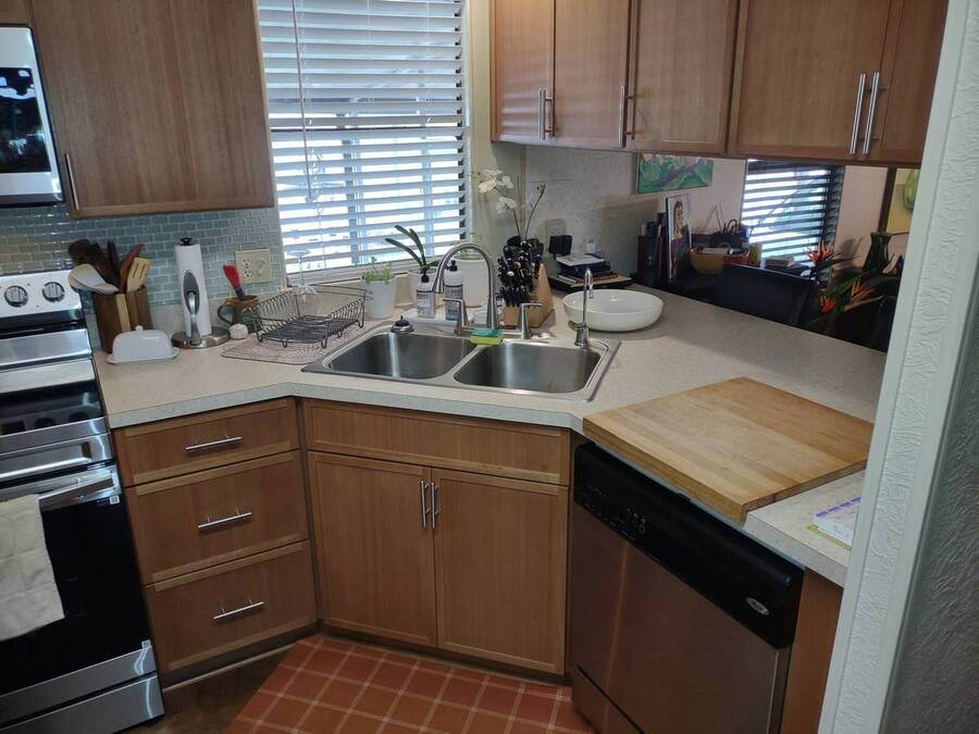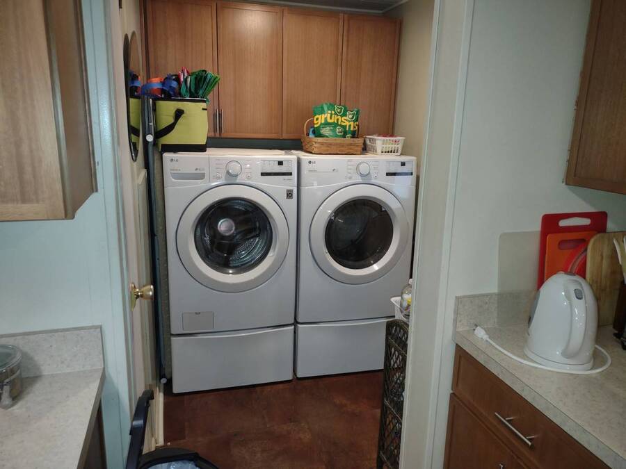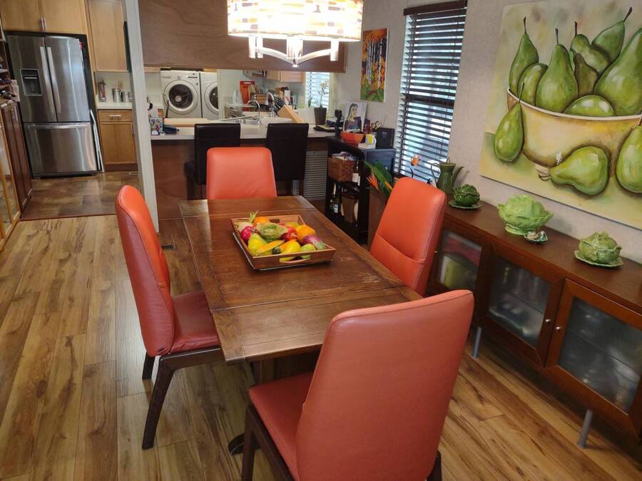 Welcome to this beautifully maintained 2-bedroom, 2-bath double-wide offering comfort, style, and valuable recent upgrades. The newly remodeled kitchen is the heart of the home, featuring upgraded stainless steel appliances, a side-by-side refrigerator, ceramic-top range, double stainless steel sink, dishwasher, and an attractive ceramic tile backsplash. The open-concept design includes a convenient serving window to the dining area - perfect for entertaining - and offers space for a cozy breakfast nook to enjoy your morning coffee or afternoon snack. Easy-care laminate flooring flows throughout the main living areas, while both bathrooms feature durable ceramic tile flooring for added style and convenience. Step outside through the rear door to a spacious screened room - an ideal spot to relax and enjoy Florida living year-round. The screened area provides access to the storage shed and the rear yard, offering additional functionality and outdoor space. Exterior highlights include: -Covered carport for protected parking -Lifetime rubber roof installed in 2023 -Central heating and air conditioning system installed November 2025 This move-in-ready home combines thoughtful upgrades, practical features, and a fantastic location. Don't miss your opportunity to own in one of Lakeland's most desirable communities!