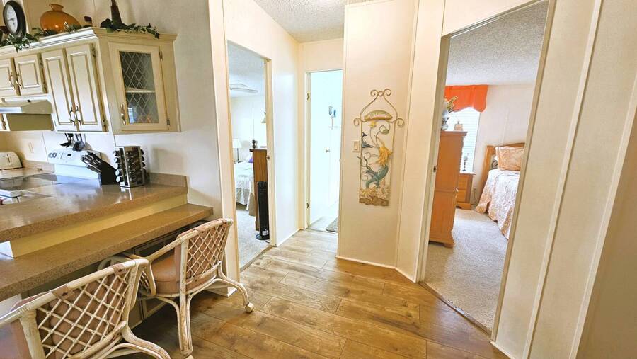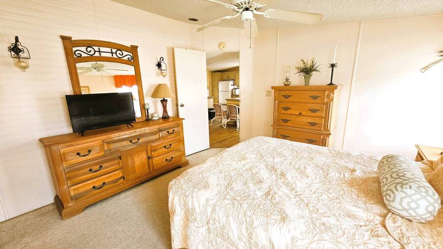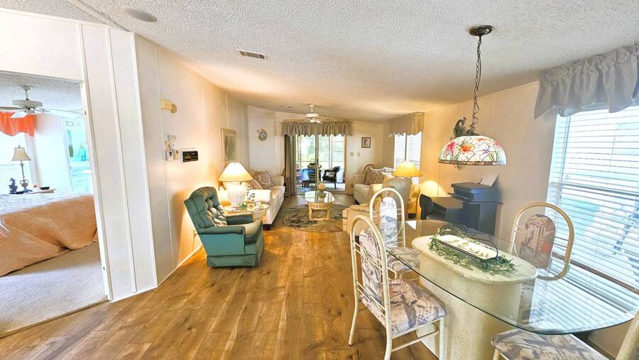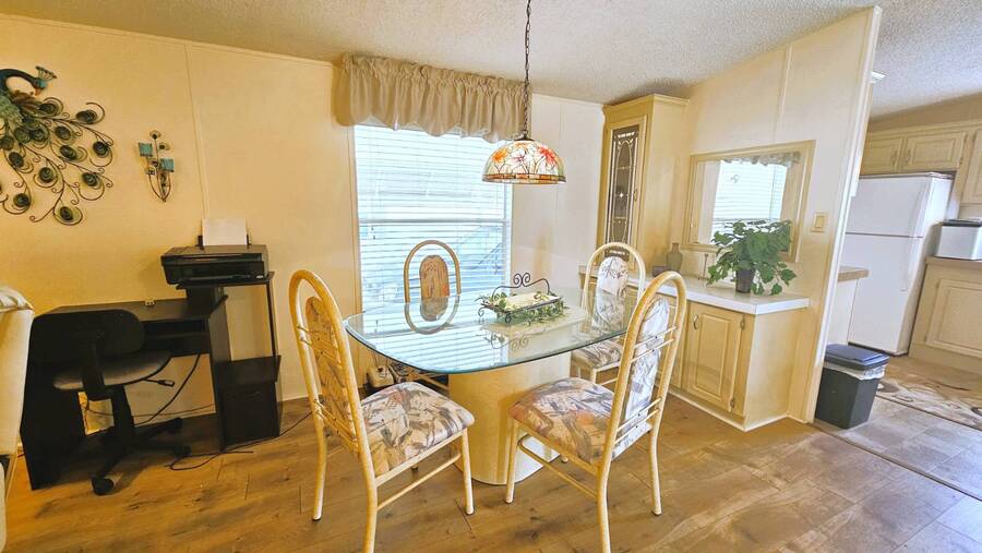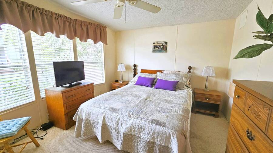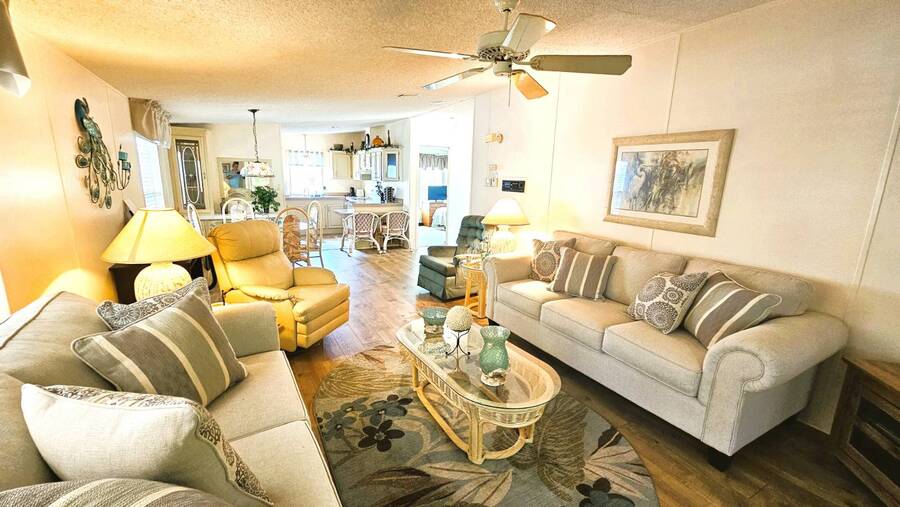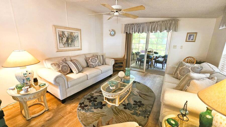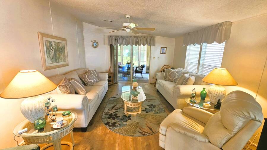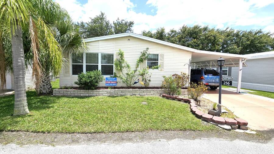 Welcome to this charming 2-bedroom, 2-bathroom manufactured home in a beautifully maintained gated 55+ community in Punta Gorda, Florida. Offering 954 sq. ft. of comfortable living space, this TURNKEY property is ready for you to move right in and start enjoying the Florida lifestyle. Step inside to an inviting open floor plan that seamlessly connects the living, dining, and kitchen areas-perfect for both relaxing and entertaining. The spacious master suite includes a walk-in closet and a walk-in shower, while the guest bedroom and second bath provide ample room for visitors. A large, enclosed lanai overlooks a lush, tree-lined backyard, creating a peaceful retreat. You'll also enjoy an open patio, two storage sheds, and a two-car carport for added convenience. Recent updates include a 2023 shingle roof and a 2011 central A/C system, New vapor barrier and updated pipes. This pet-friendly community offers resort-style amenities, including a heated screened-in swimming pool, clubhouse with planned activities, shuffleboard, dog park, and more surrounded by tropical landscaping. With a monthly lot lease of $783, you'll experience a vibrant yet relaxing lifestyle just minutes from shopping, dining, and all that Punta Gorda has to offer. Contact Lulu & David today to book your private viewing of this special Florida Gem!