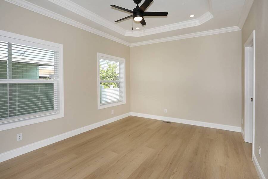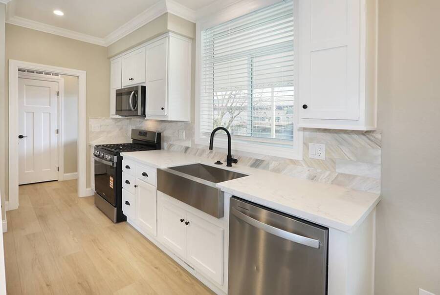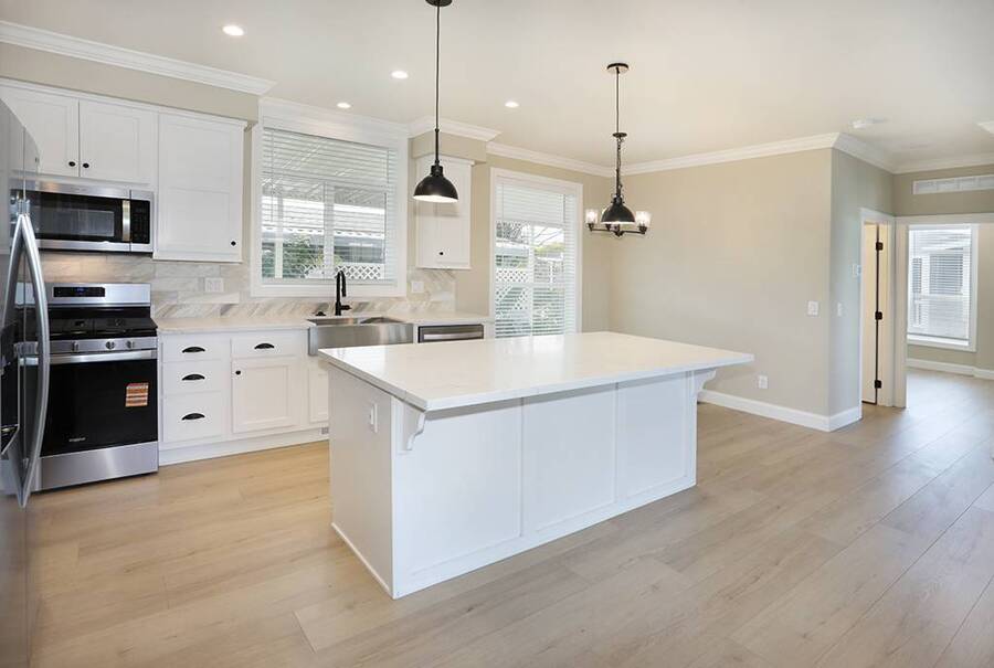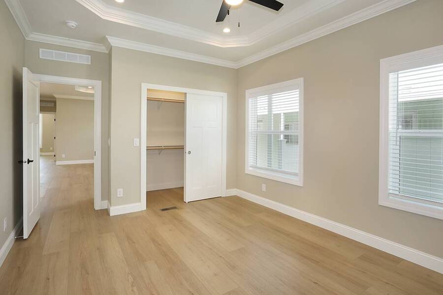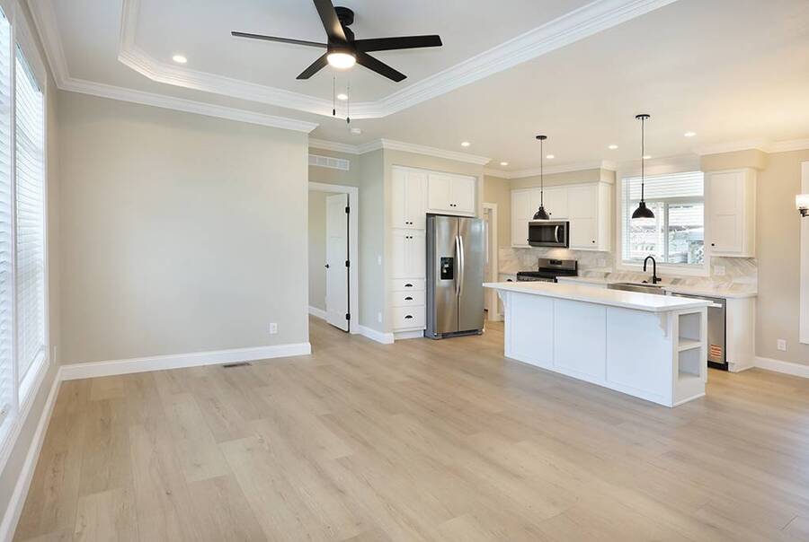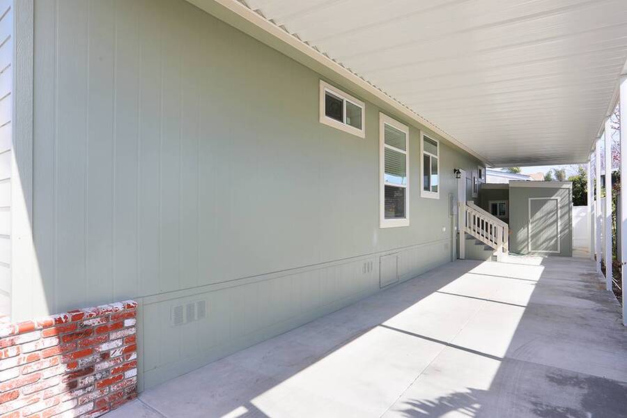 Stop dreaming and start living! Be the first to call this stunning brand new 3 bedroom 2 bath masterpiece your home. Located inside the wonderful senior community of Saddleback Mobilodge on a desirable inner location. Saddleback Mobilodge is one of Orange County's top ranked 55+ Senior Communities. It is centrally located in the middle of Orange County in the City of Tustin, known as the "City of Trees" for its abundance of trees and natural beauty. This 1250 sq ft home has 3 bedrooms and 2 bathrooms. It was manufactured by Skyline and has been upgraded to a luxurious level. The interior was professionally painted to accentuate the 5-inch base boards and crown molding, giving it a modern look. There is 100% waterproof laminate flooring throughout (no carpet). The open floor plan and 9' flat ceilings offer a high-end and spacious look. There is also an elegantly designed coffered ceiling in the living room and master bedroom. The kitchen and bathroom quartz counters are installed onsite, not by the manufacturer, and are the same high quality of quartz that you would find in a multi-million dollar single family home. White shaker cabinets along with a full marble tile backsplash provide a modern and stylish look to compliment the quartz counters. The marble tile backsplash is of the same exceptional quality as the quartz. These high end materials are something rarely found in a manufactured home. The master bathroom has it all. A floor to ceiling tile shower with built in seat, an oversized linen closet, and dual sinks. The water closet is enclosed in its own room. The guest bathroom could pass as a master with an elegant tile to the ceiling tub shower. The home has great closet space. All three rooms feature walk in closets. Both guest room closets are large as well as the master closet. There is a relaxing outside patio at the rear of the home. Covered by an awning and surrounded by a new vinyl fence, this is a great place to enjoy the outside, read a book, or barbeque during the warm summer nights. The storage shed is custom built onsite to match the home. This home includes central heat and air conditioning and will be fully landscaped with a complete sprinkler system and timer. This home has many valuable structural upgrades that you will not find in most other manufactured homes. The exterior walls have been upgraded from 4 inch to 6-inch thickness, which is the same as single family home construction. It is a more solid build and has added insulation and home efficiency. Cement panel siding and skirting, along with upgraded architectural roof shingles and 12-inch eves make this home durable and tough against the weather. Lastly, for extra peace of mind, this home includes a one year manufacturer warranty + an additional 6 year extended warranty through Assurant. The sales price for this home is only $360,000!!! With all the luxurious upgrades, the location inside a top ranked senior community, and a new home warranty, makes this one of the best deals in Orange County! The community at Saddleback is a mixture of working professionals and retired residents. The Park has a small town feel that is rarely found nowadays. Neighbors watch out for neighbors, residents wave, and on a typical day you will see residents walking around the park with their dogs, riding bikes to keep fit, hanging out by the pool, visiting with their grandkids, and tending to their gardens. The combination of value, social life, and the close-knit is unmatched. Saddleback Mobilodge is located in Tustin and is just minutes from the fun and popular Old Town Tustin and the Tustin Area Senior Center. There is an active social club within the Park that hosts many events throughout the year including bingo, line dancing, dinners, Taichi class, Bible Study and themed parties.